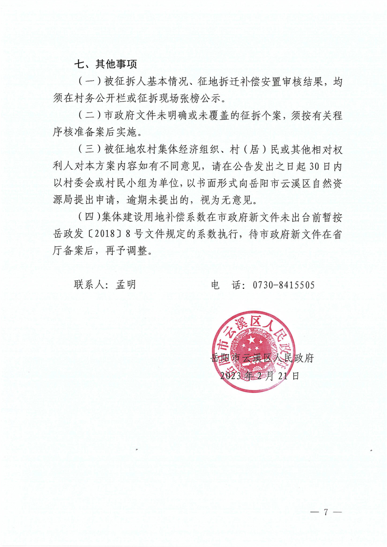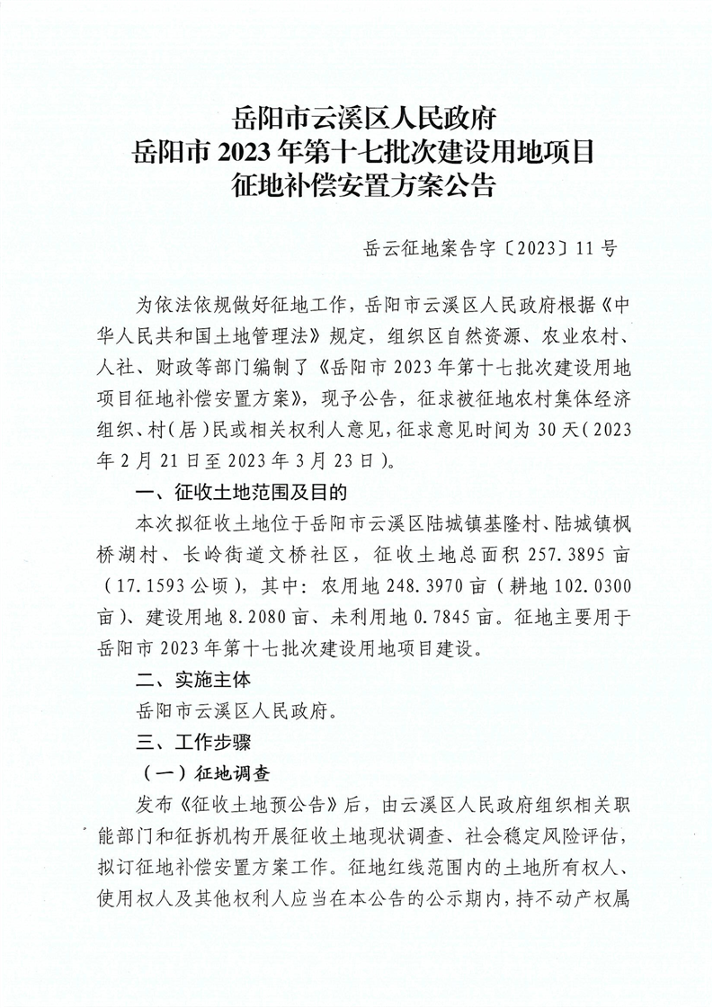 岳阳市2023年第十七批次建设用地项目征地补偿安置方案公告
