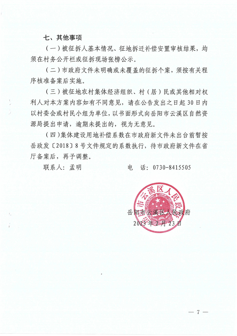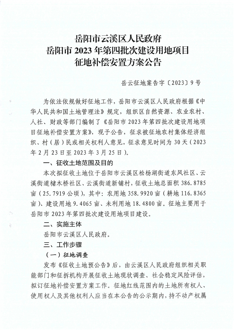 岳阳市2023年第四批次建设用地项目征地补偿安置方案公告