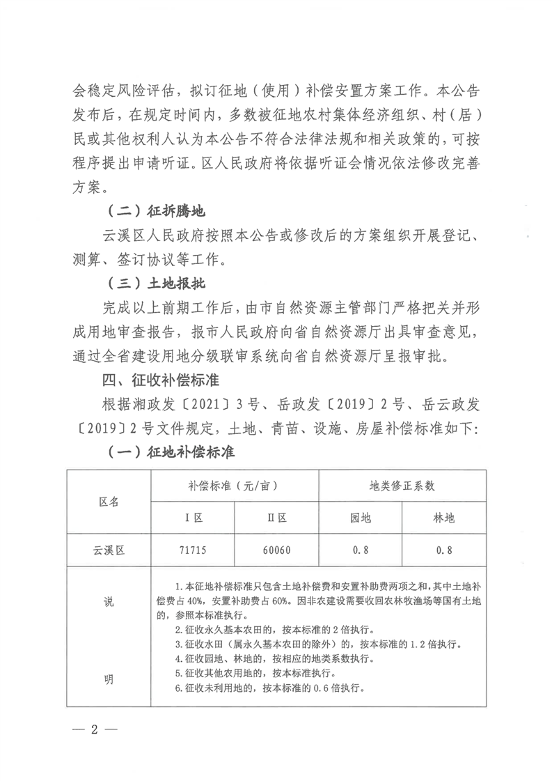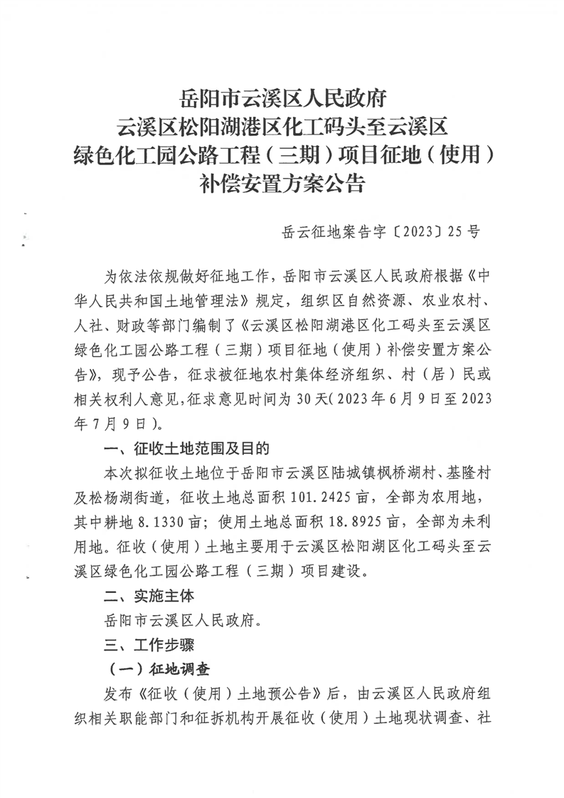 云溪区松阳湖港区化工码头至云溪区绿色化工园公路工程(三期)项目征地(使用)补偿安置方案公告