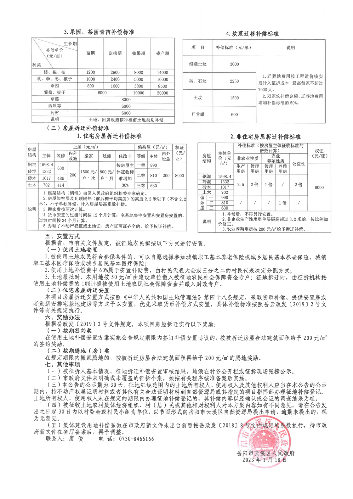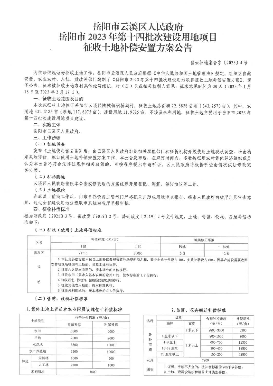 岳阳市2023年第十四批次建设用地项目征地补偿安置方案公告