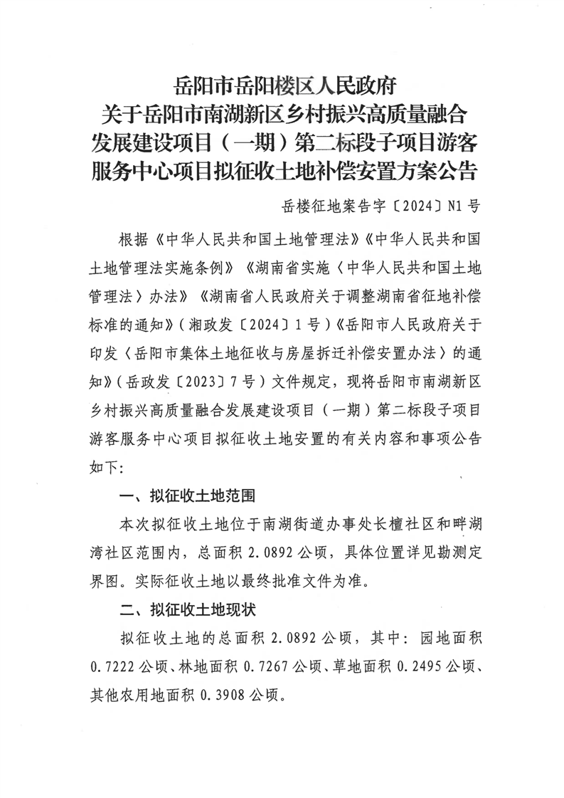 岳阳市南湖新区乡村振兴高质量融合发展建设项目(一期)第二标段子项目游客服务中心项目