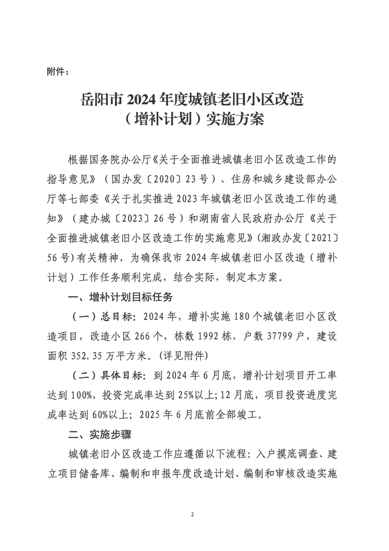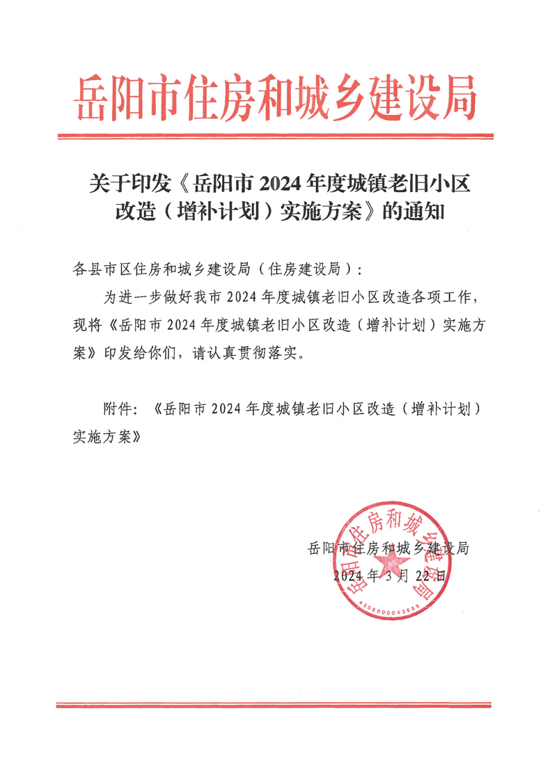 关于印发《岳阳市2024年度城镇老旧小区改造(增补计划)实施方案》的通知