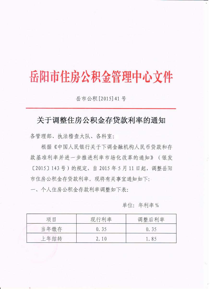 关于调整住房公积金存贷款利率的通知