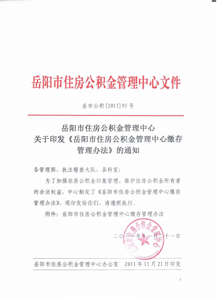 关于印发《岳阳市住房公积金管理中心缴存管理办法》的通知