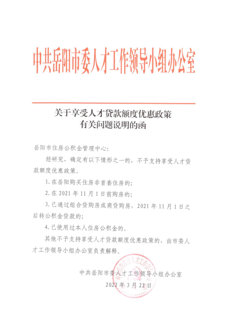 关于享受人才贷款额度优惠政策有关问题说明的函