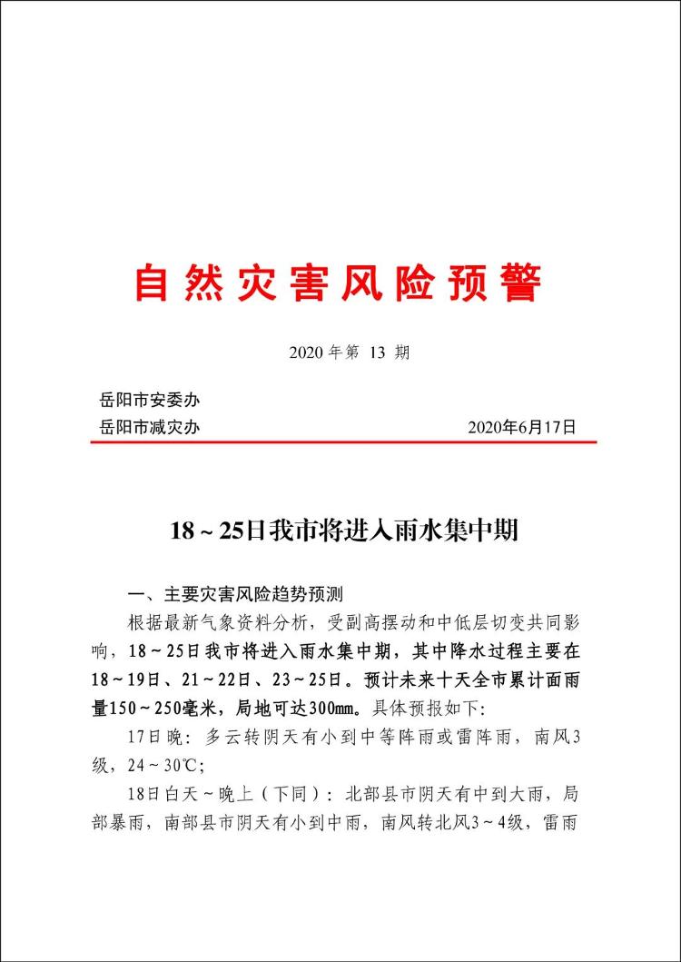 自然灾害风险预警2020年第13期/注意!18~25日我市将进入雨水集中期