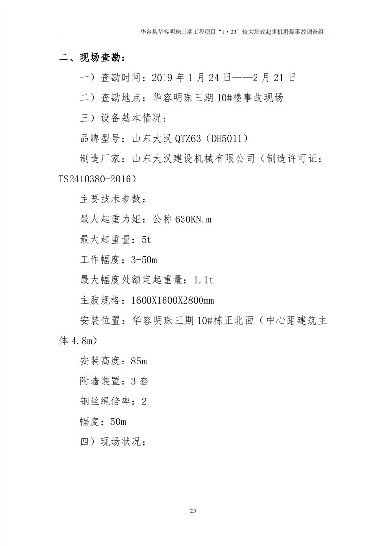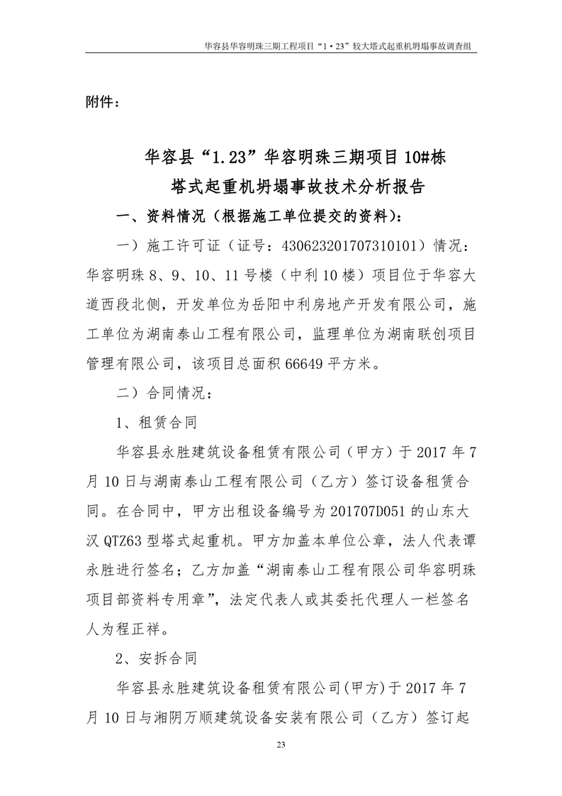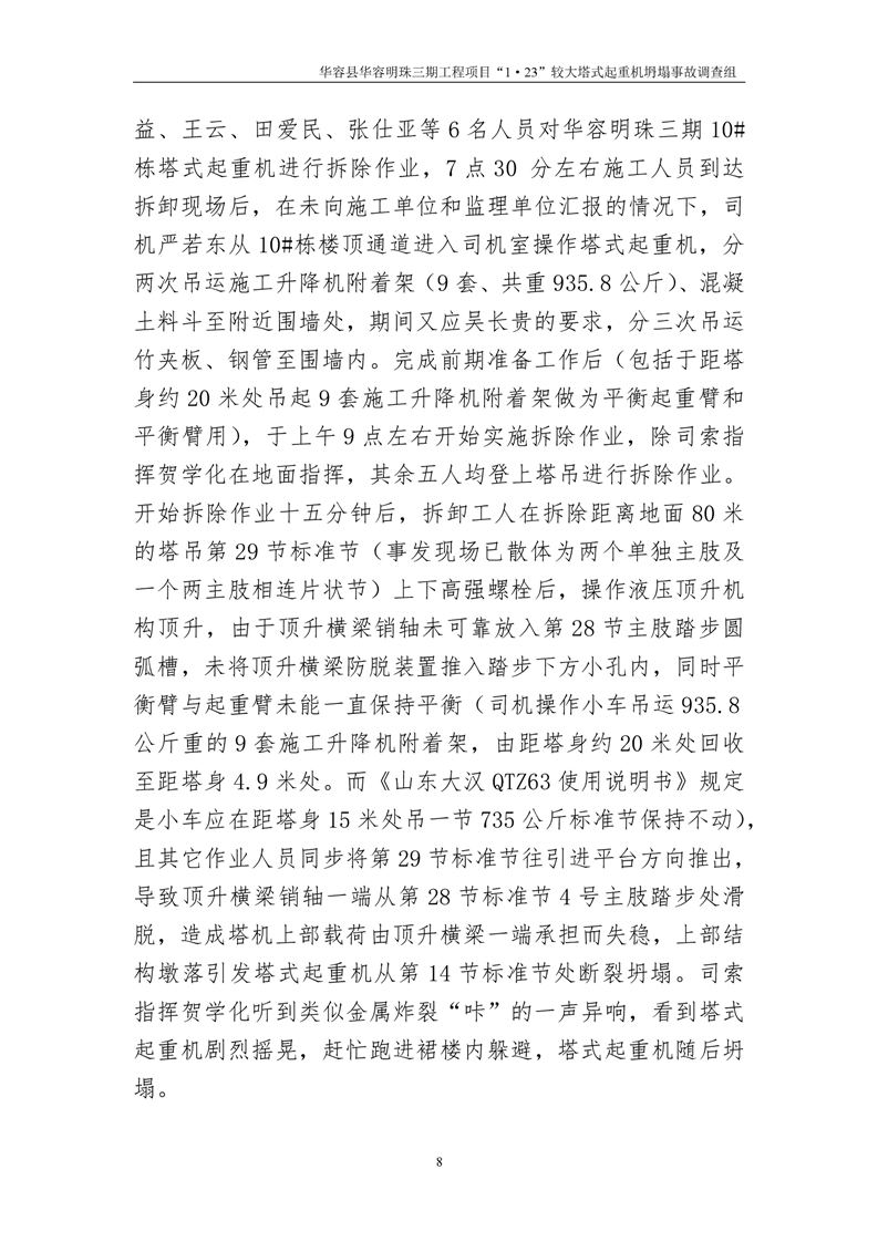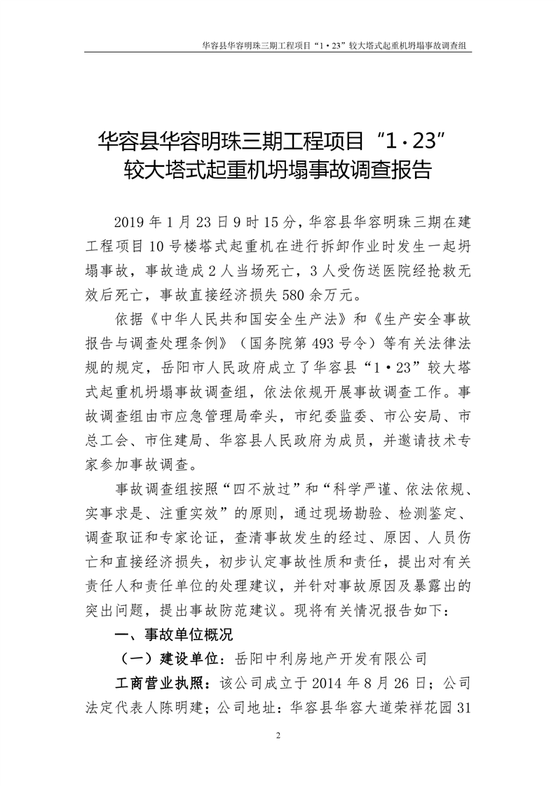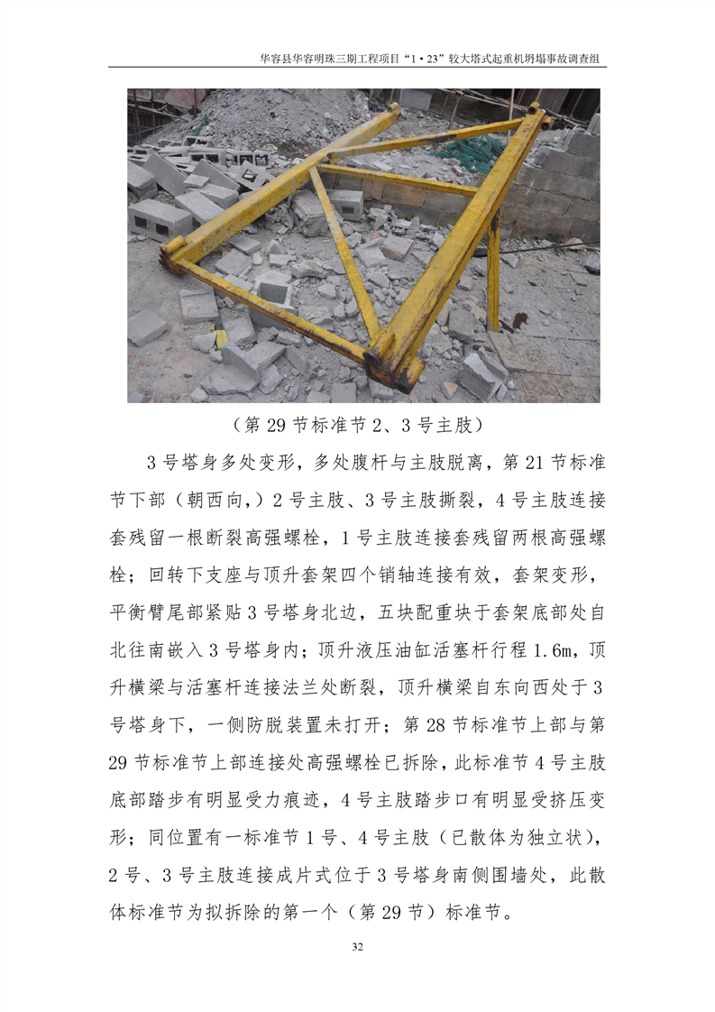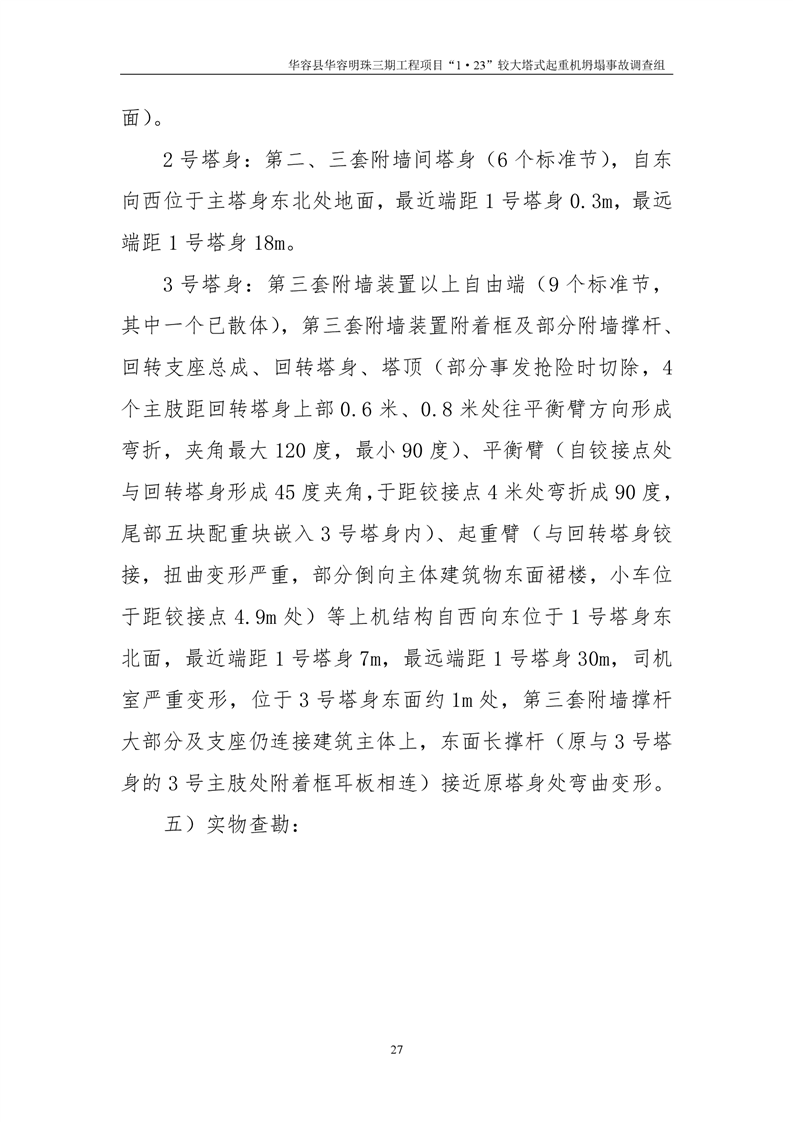 华容县华容明珠三期工程项目“1·23”较大塔式起重机坍塌事故调查报告