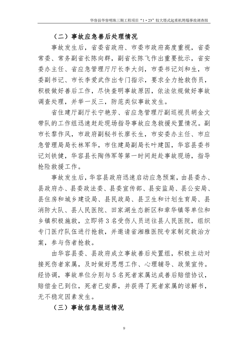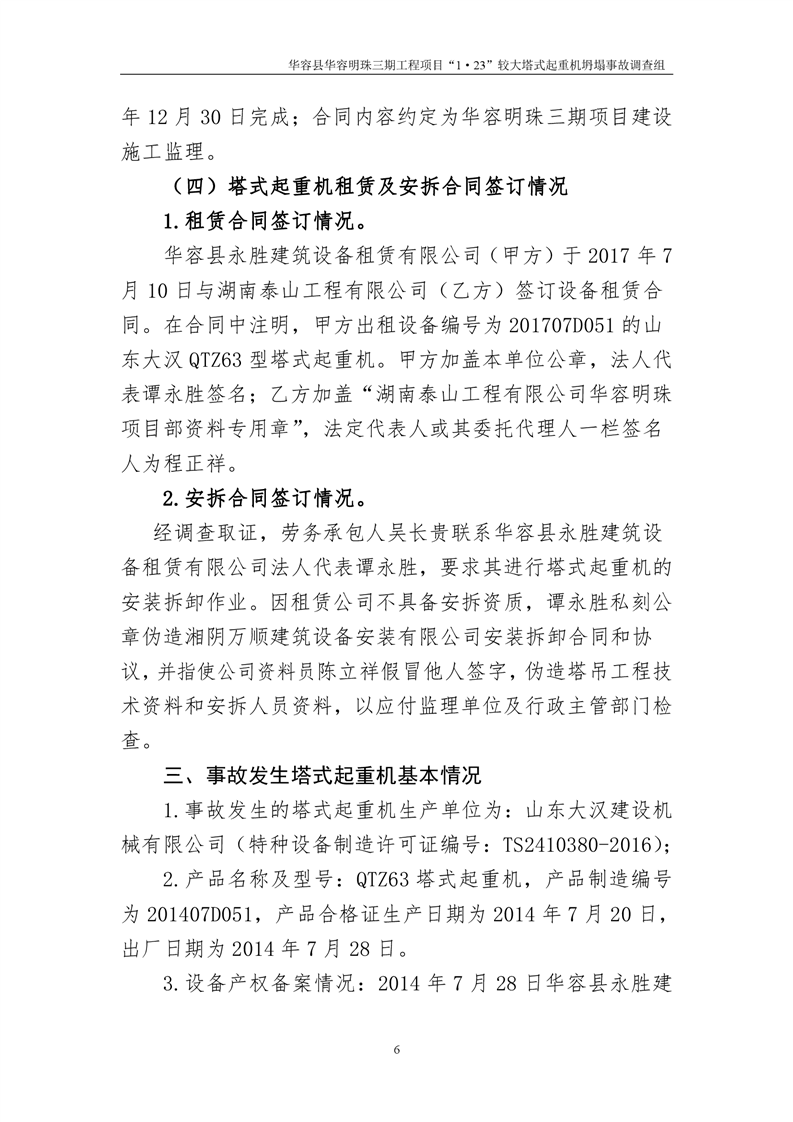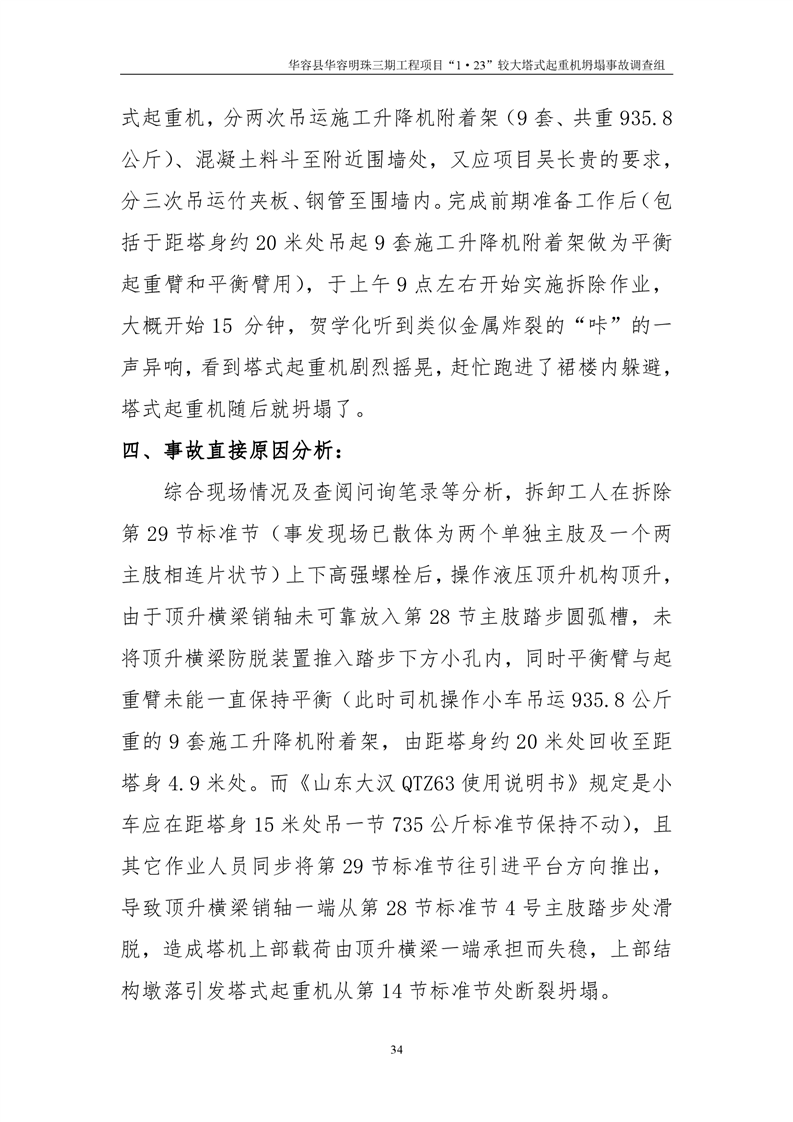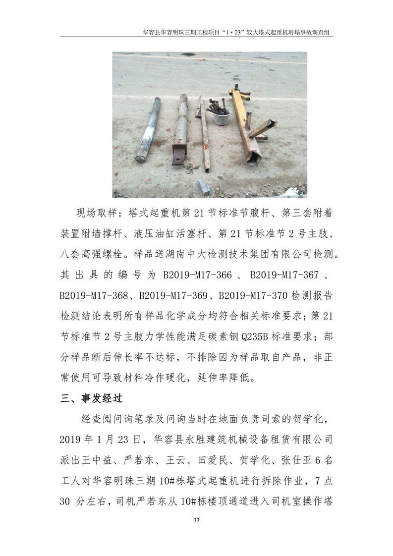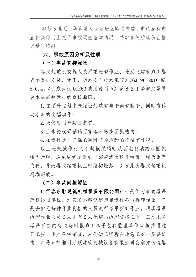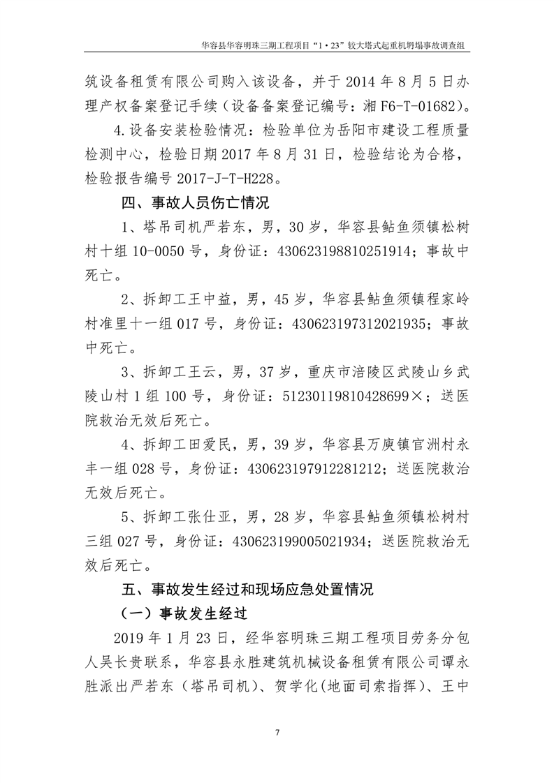 华容县华容明珠三期工程项目“1·23”较大塔式起重机坍塌事故调查报告