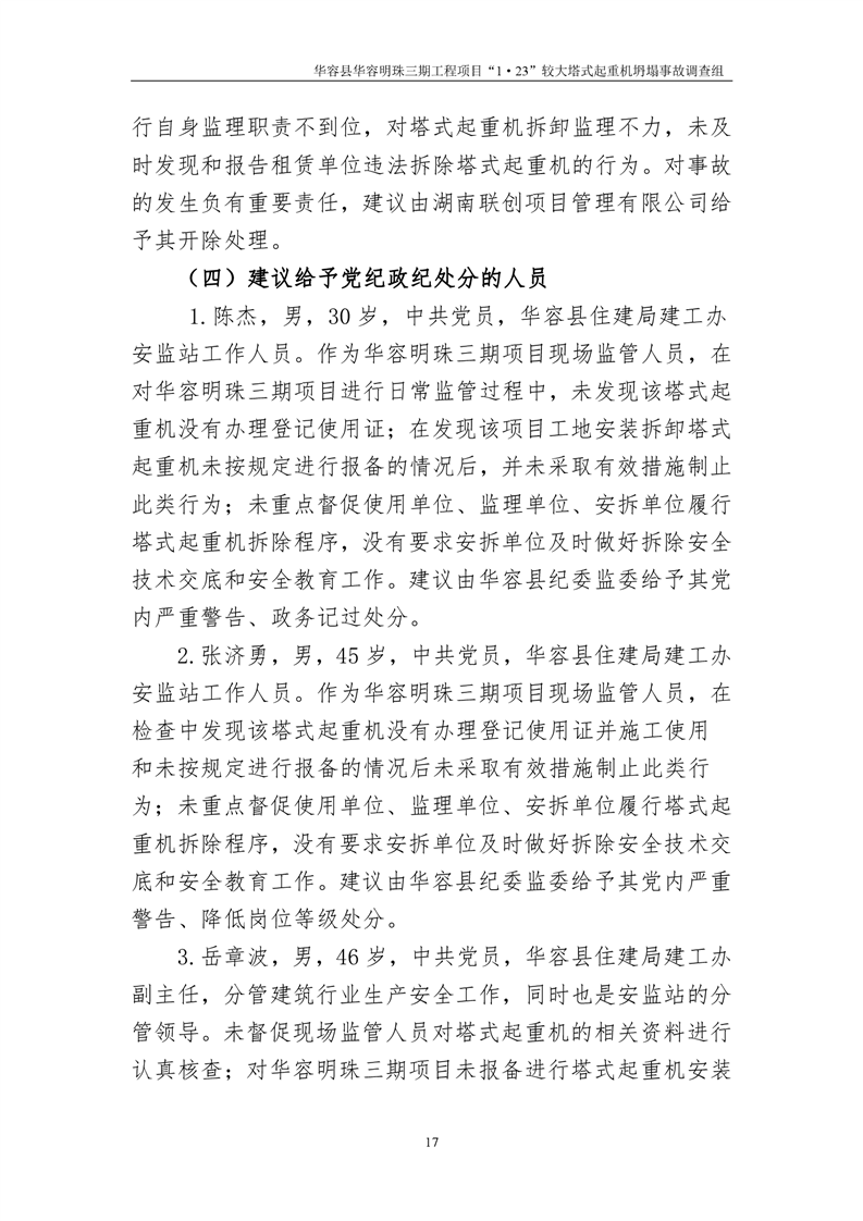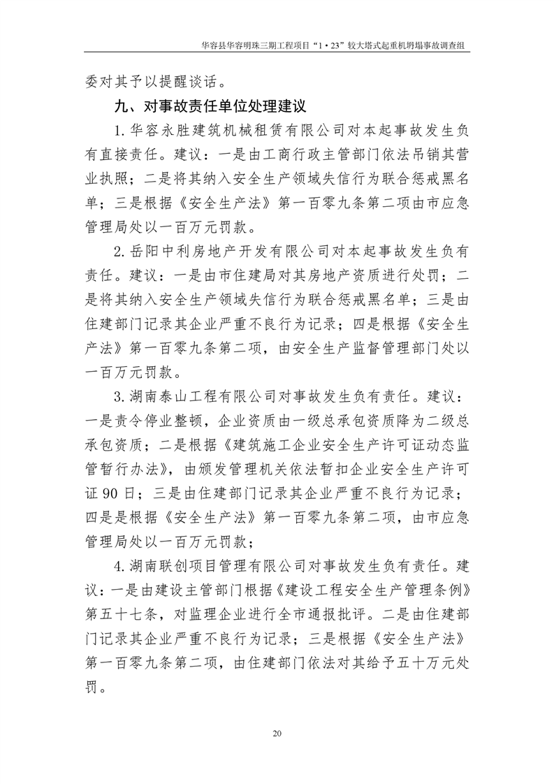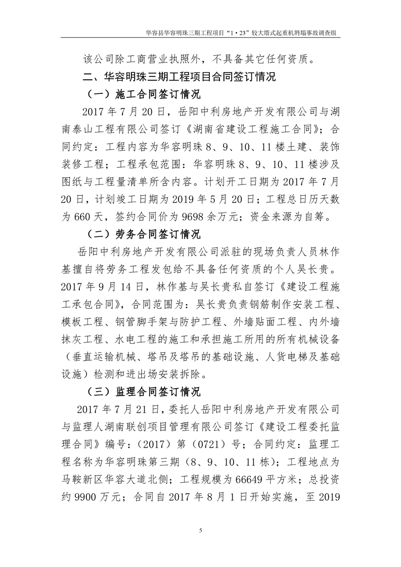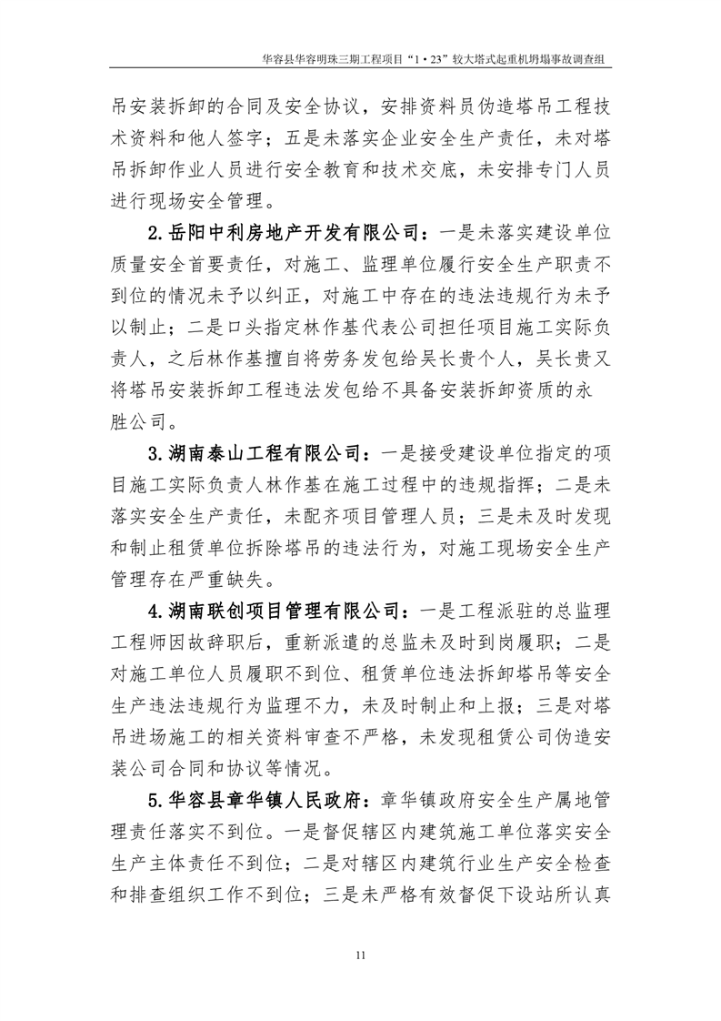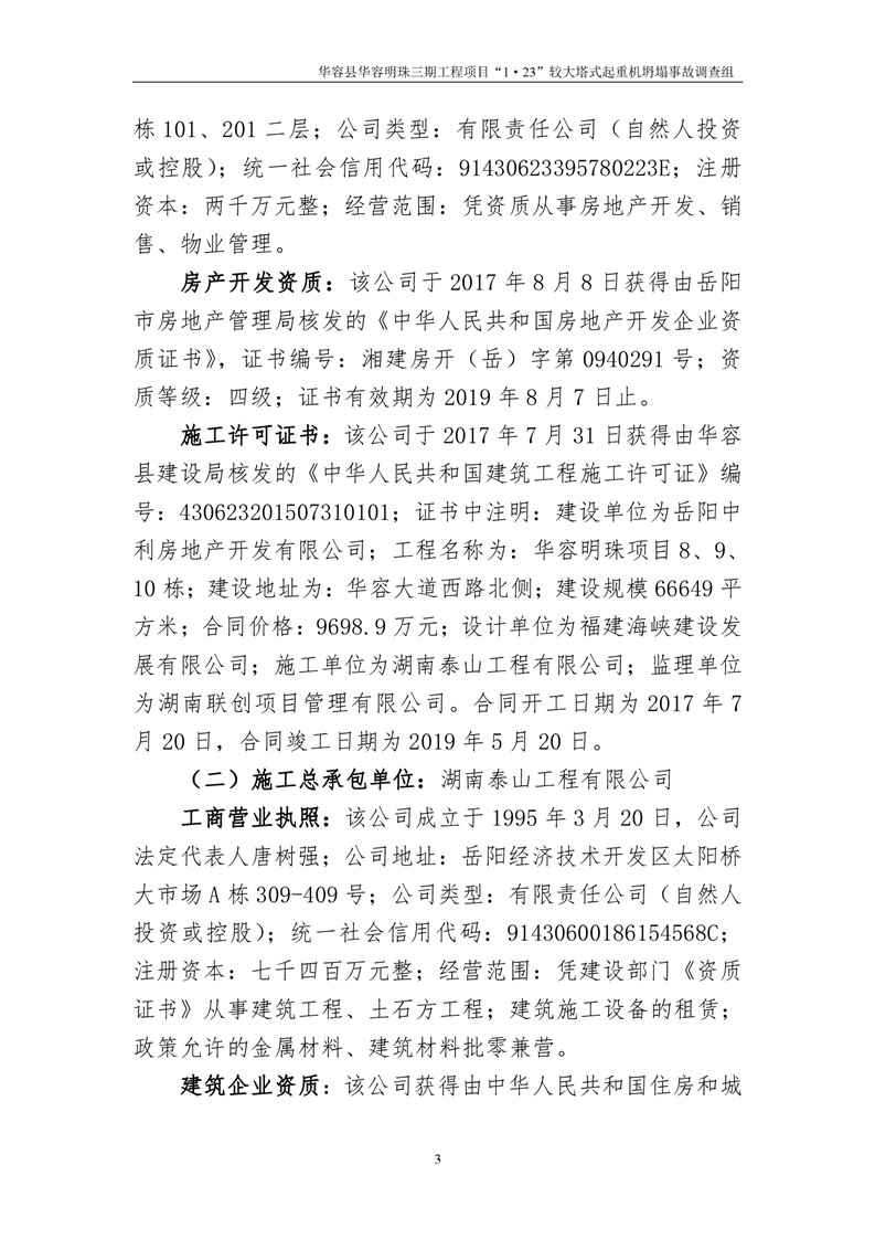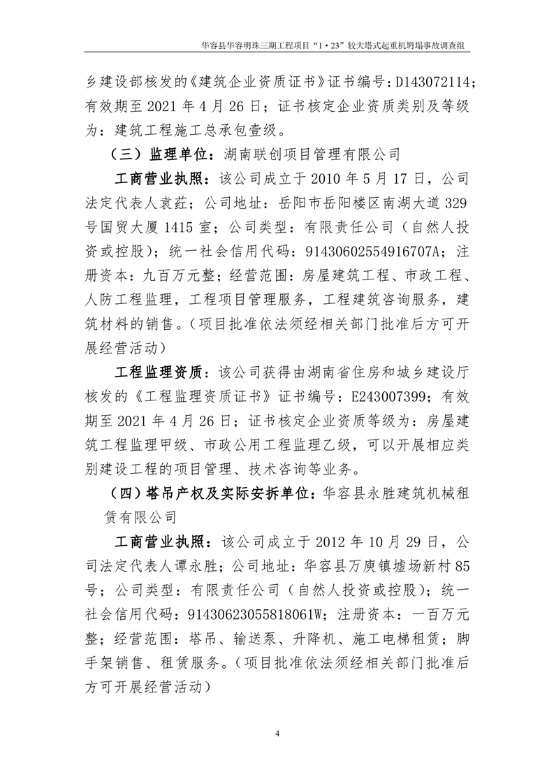 华容县华容明珠三期工程项目“1·23”较大塔式起重机坍塌事故调查报告