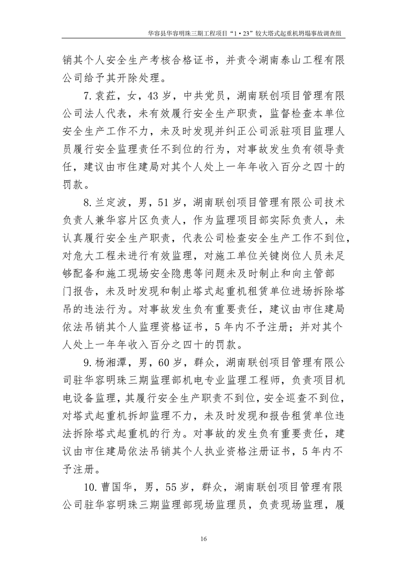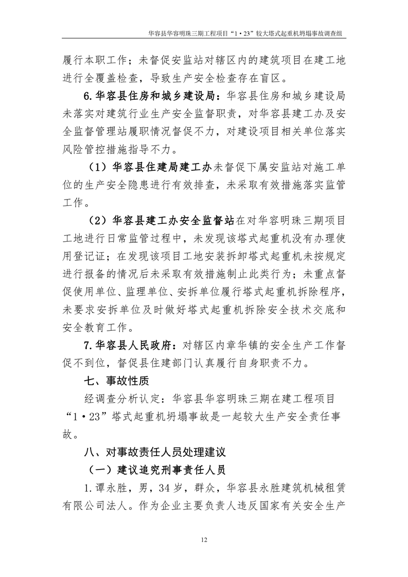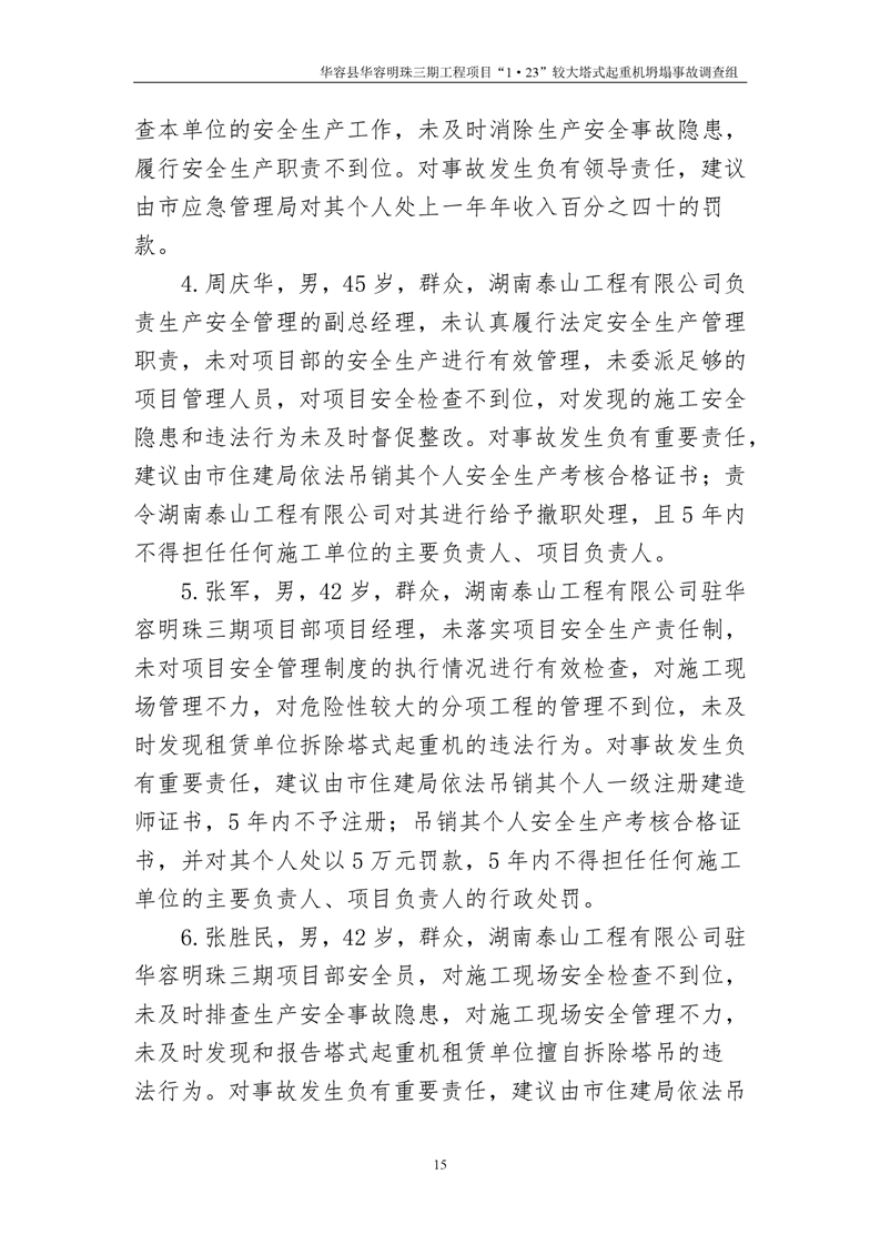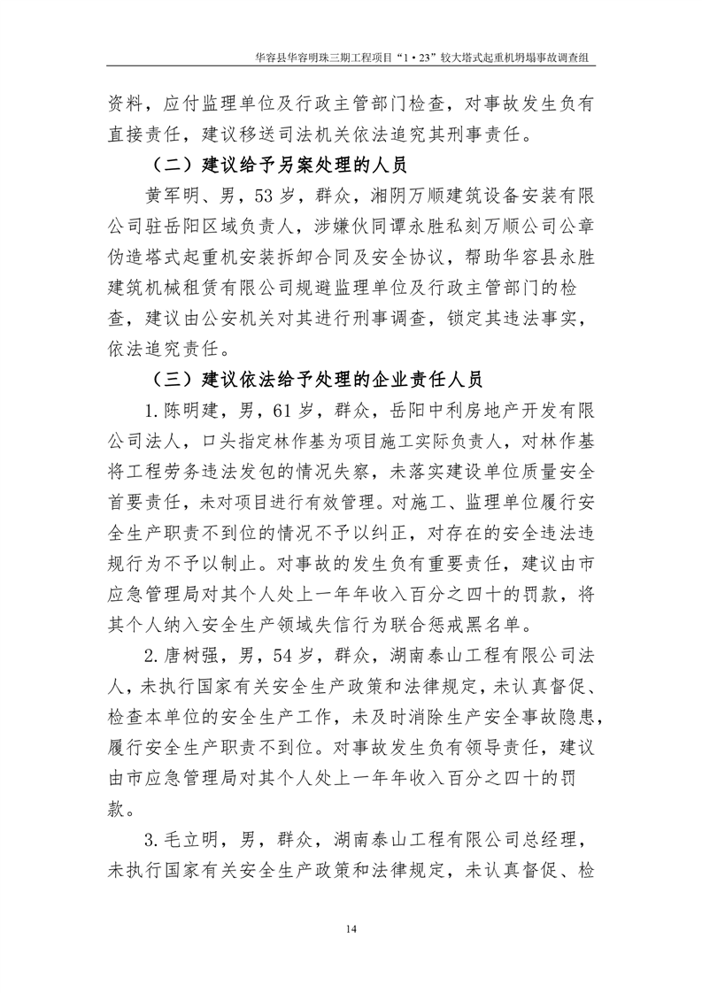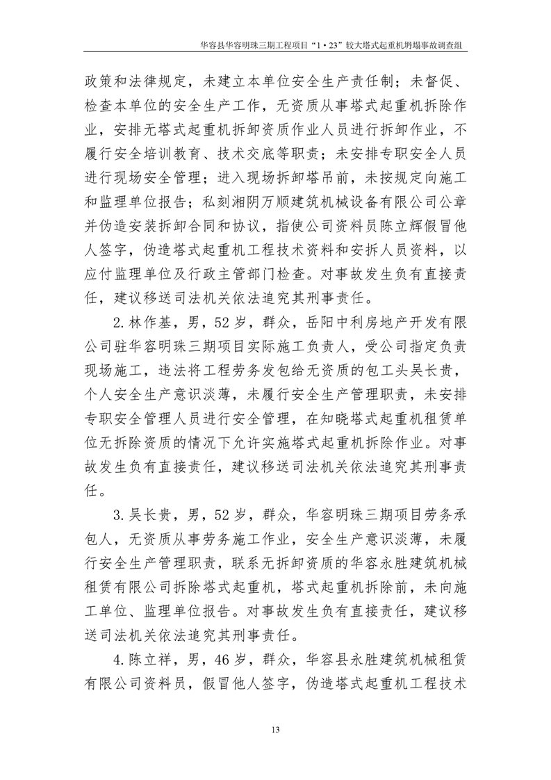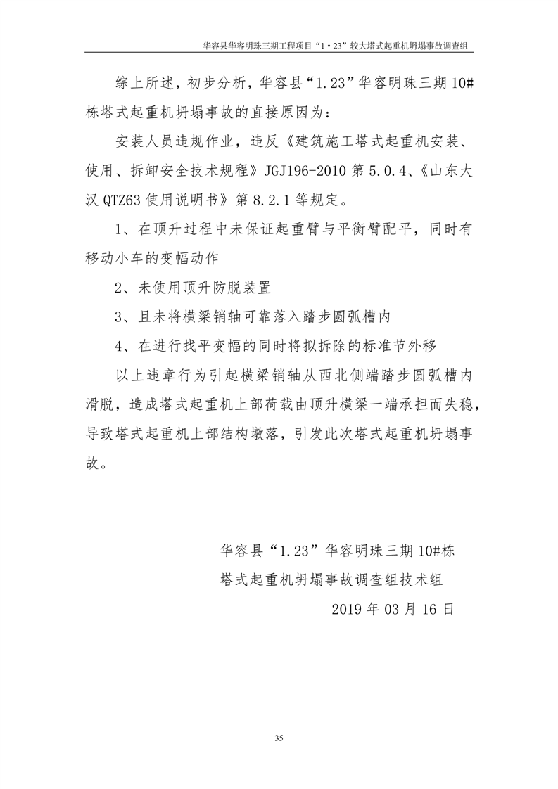 华容县华容明珠三期工程项目“1·23”较大塔式起重机坍塌事故调查报告