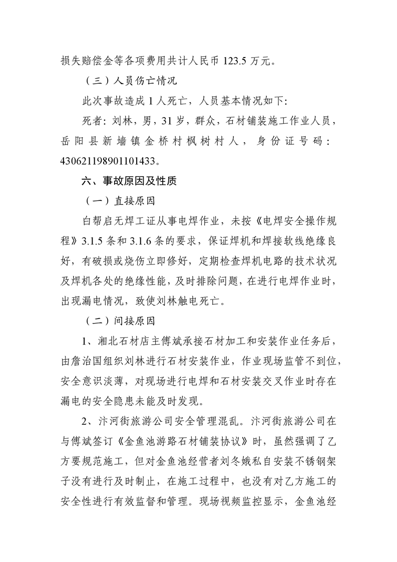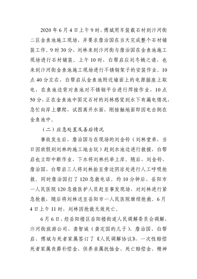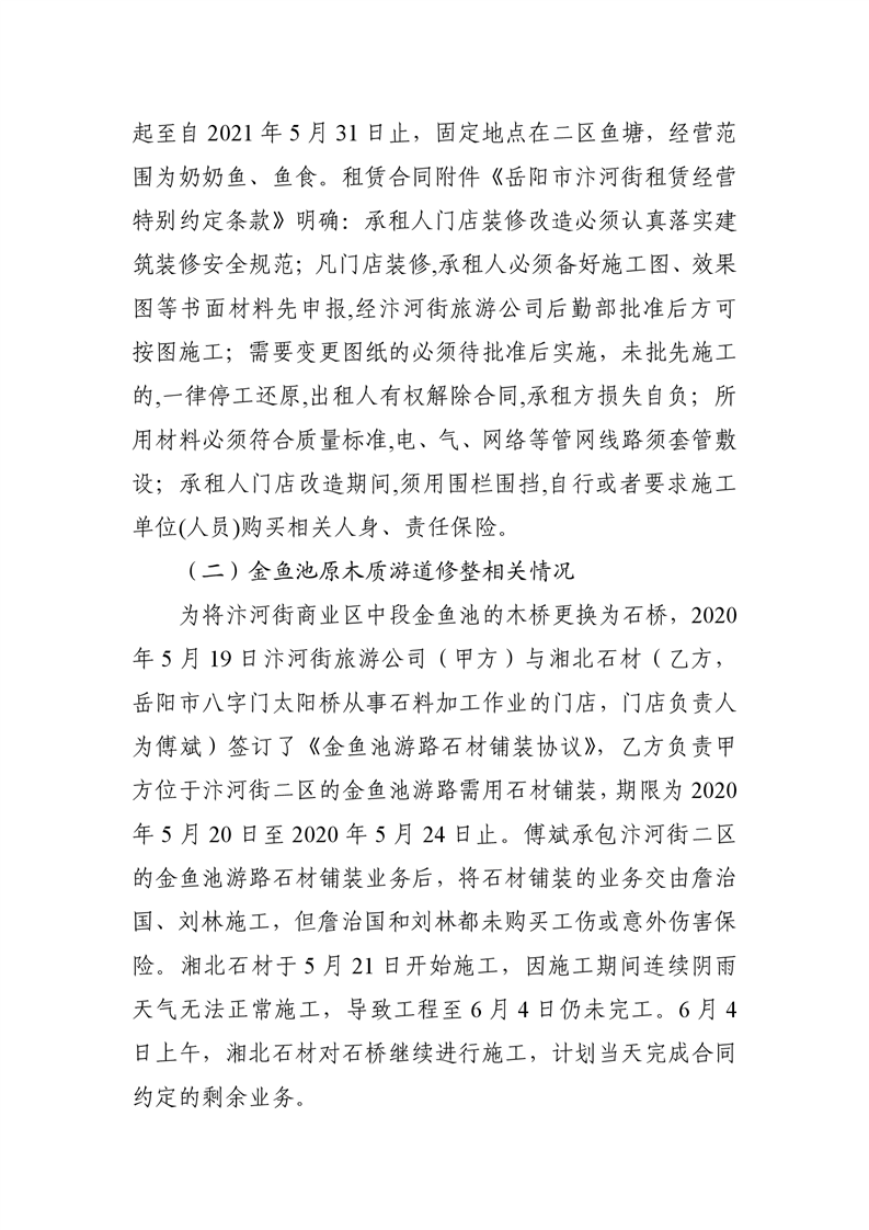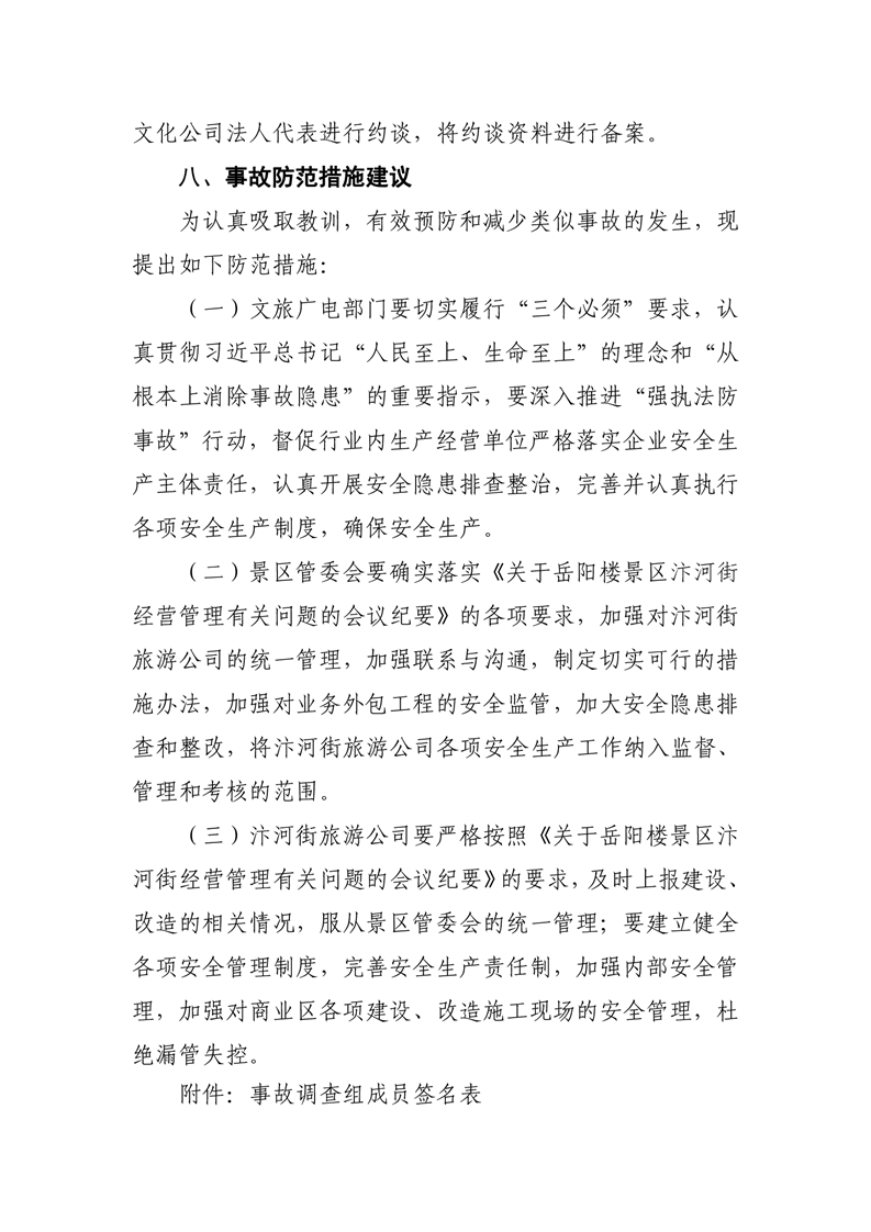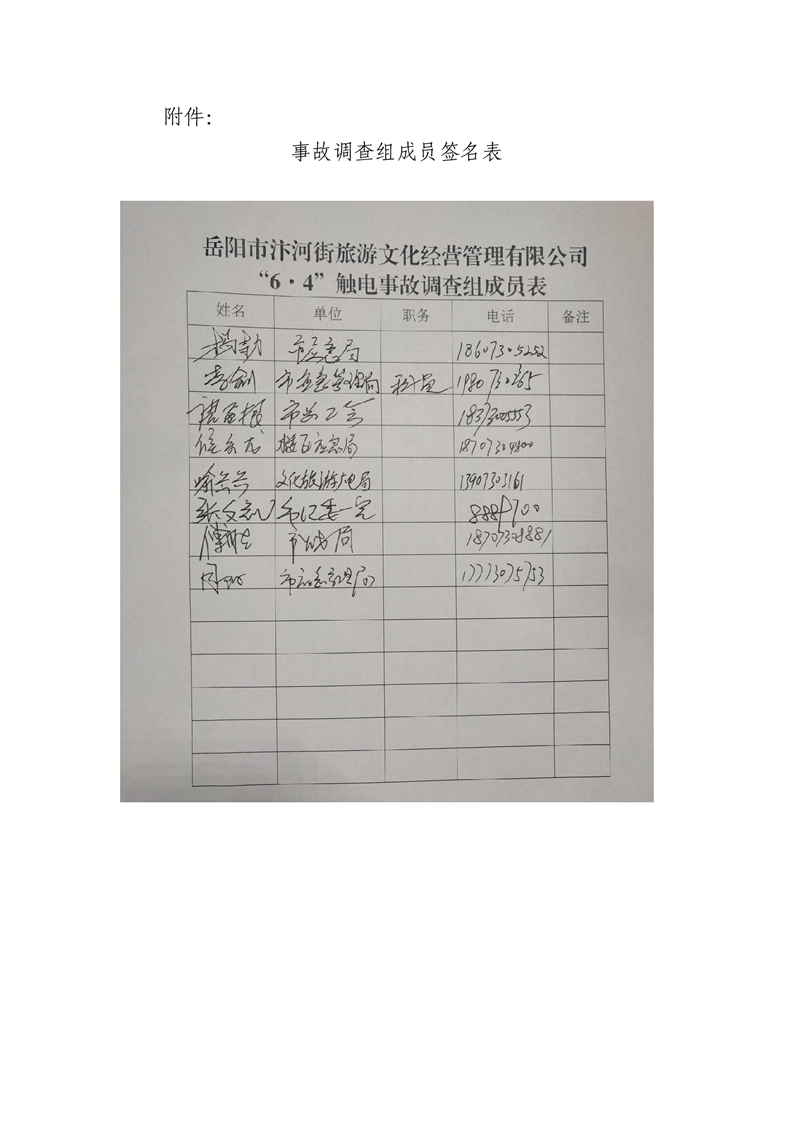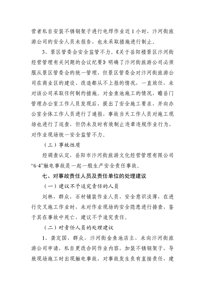 岳阳市汴河街旅游文化经营管理有限公司 “6·4”触电事故调查报告