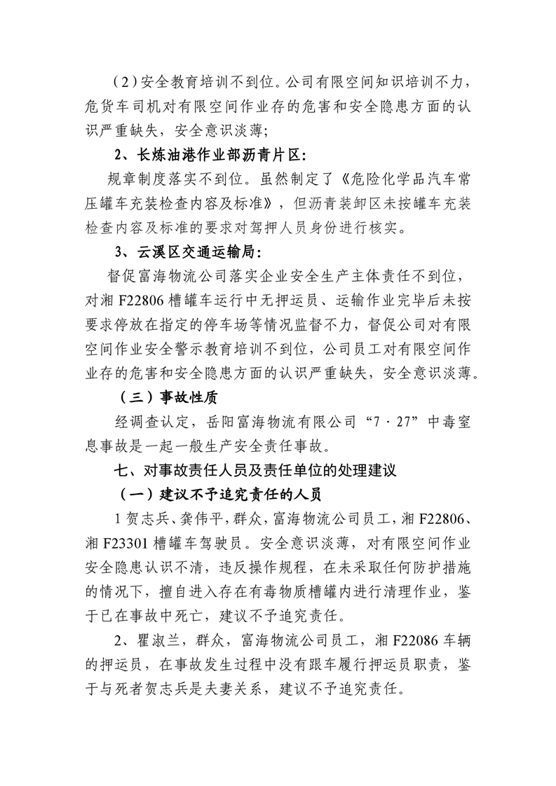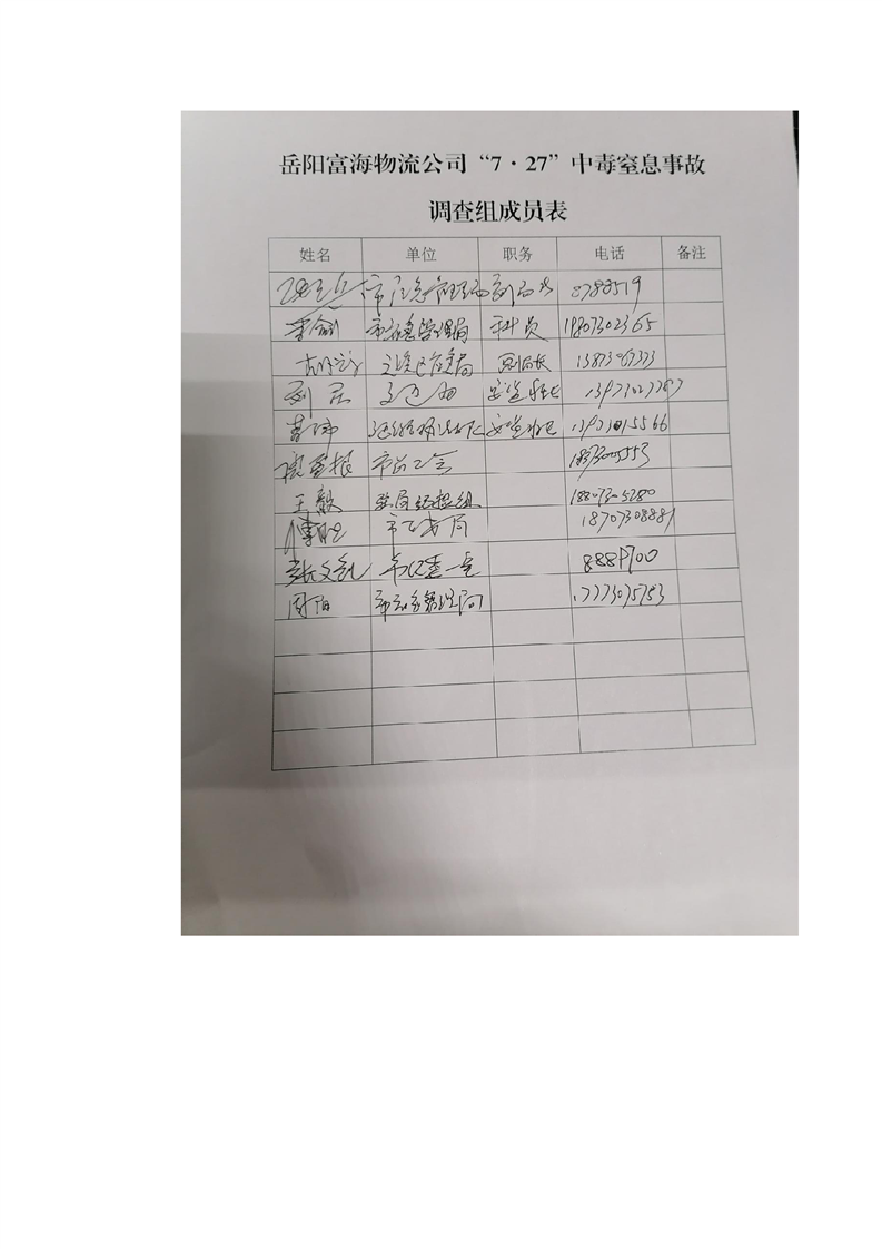 岳阳富海物流有限公司“7·27”中毒窒息事故调查报告
