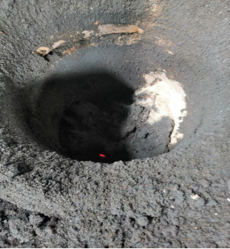2、作业时,3吨中频炉炉衬存在局部缺陷或受损,导致高温钢液穿透炉衬与冷却水相遇发生钢液喷溅。