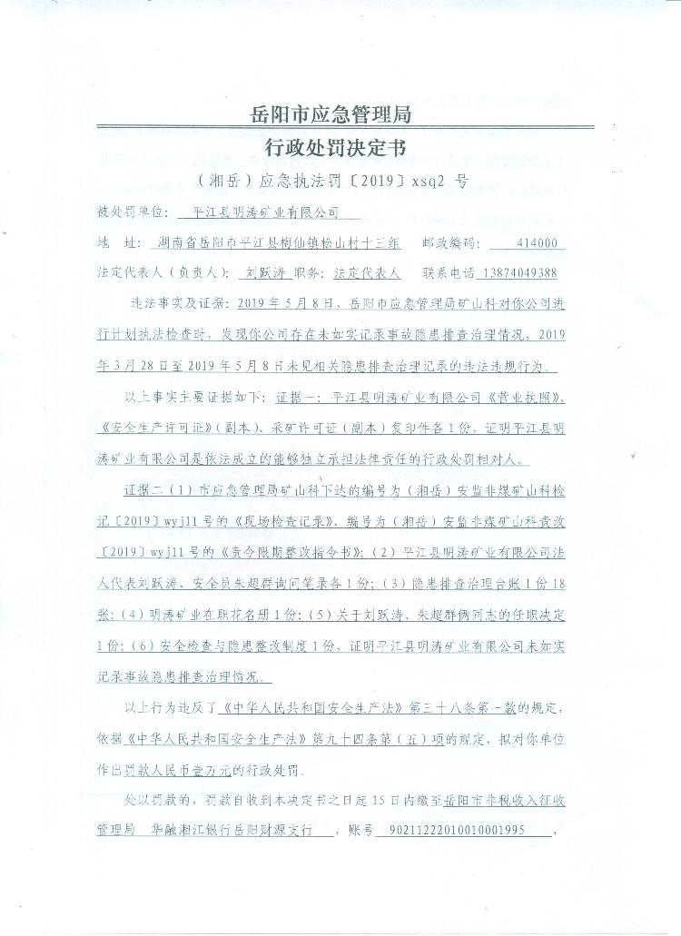 平江县明涛矿业有限公司