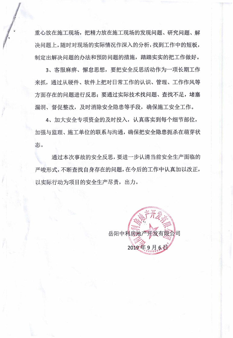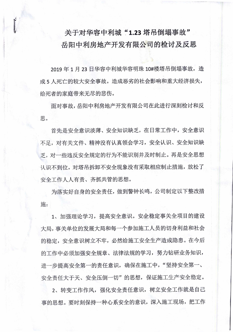 岳阳中利房地产开发有限公司关于“1.23”塔吊事故的检讨书