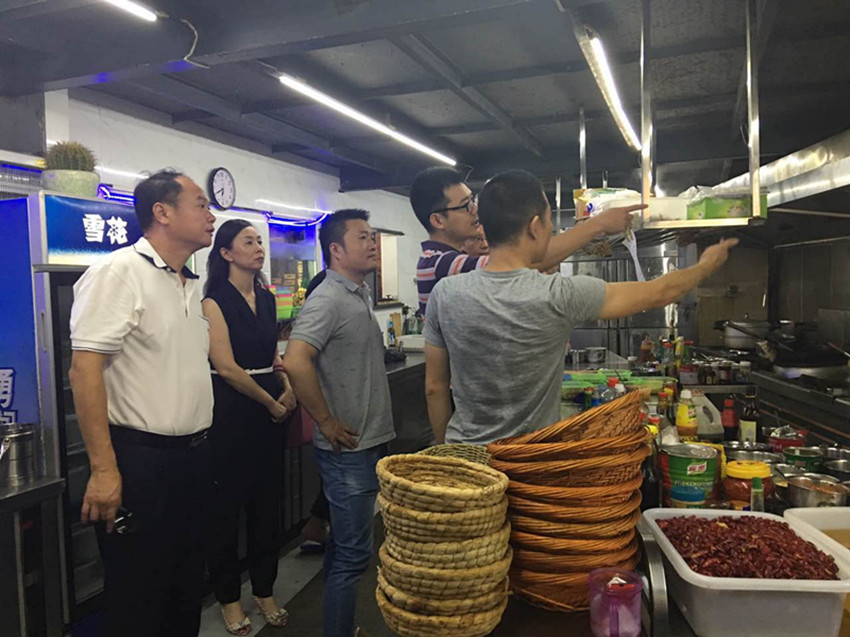 督查组一行冒着高温,深入格兰云天、海盗风范等2家餐饮企业,实地检查油烟净化处理设施设备运行情况,并听取了岳阳楼区大气污染防治工作的口头汇报。督查组充分肯定了岳阳楼区餐饮业大气污染防治工作,明确指出,岳阳楼区要充分发挥油烟治理餐饮亮点的示范引领作用,通过以点带面、举一反三,逐步推广成功的油烟治理经验,为中心城区的餐饮业油烟治理探索出一条可行的道路,逐步破解油烟扰民这一城市管理难题。
