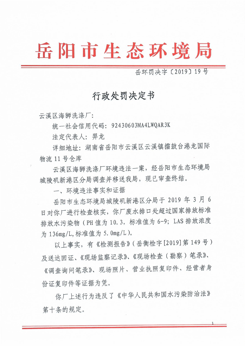 岳环罚决字[2019]19号