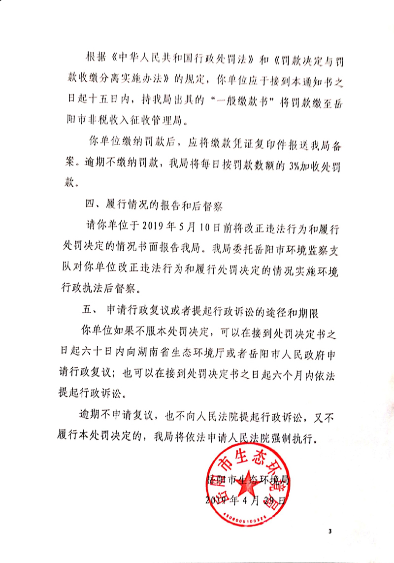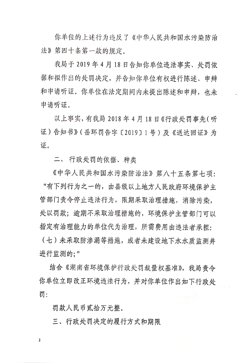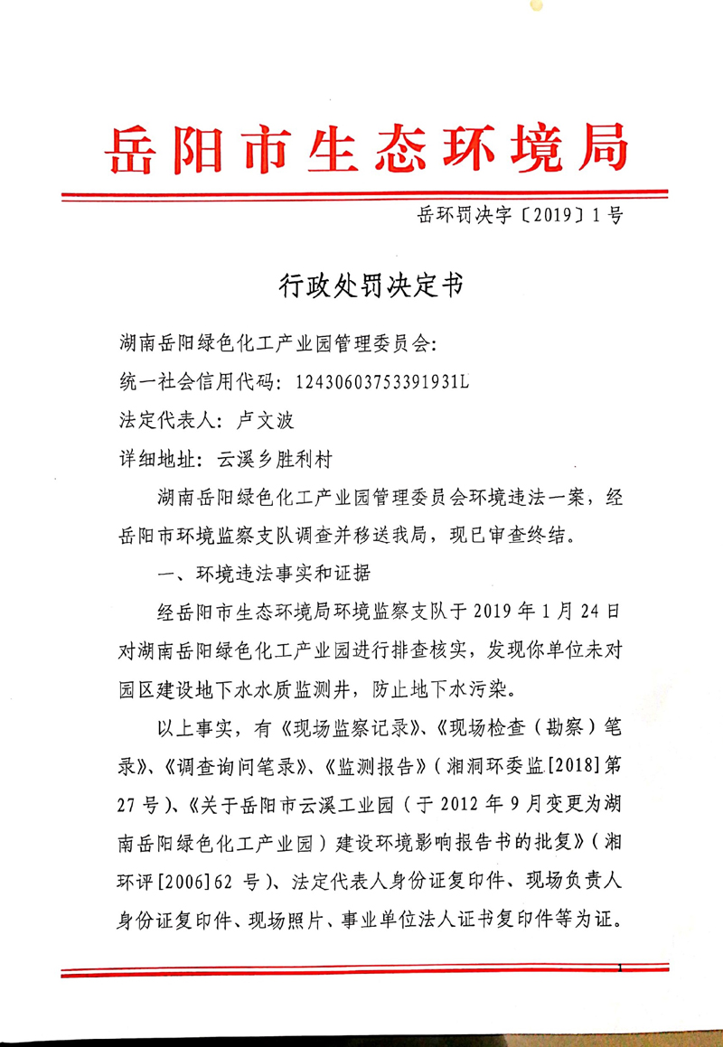 岳环罚决字[2019]1号