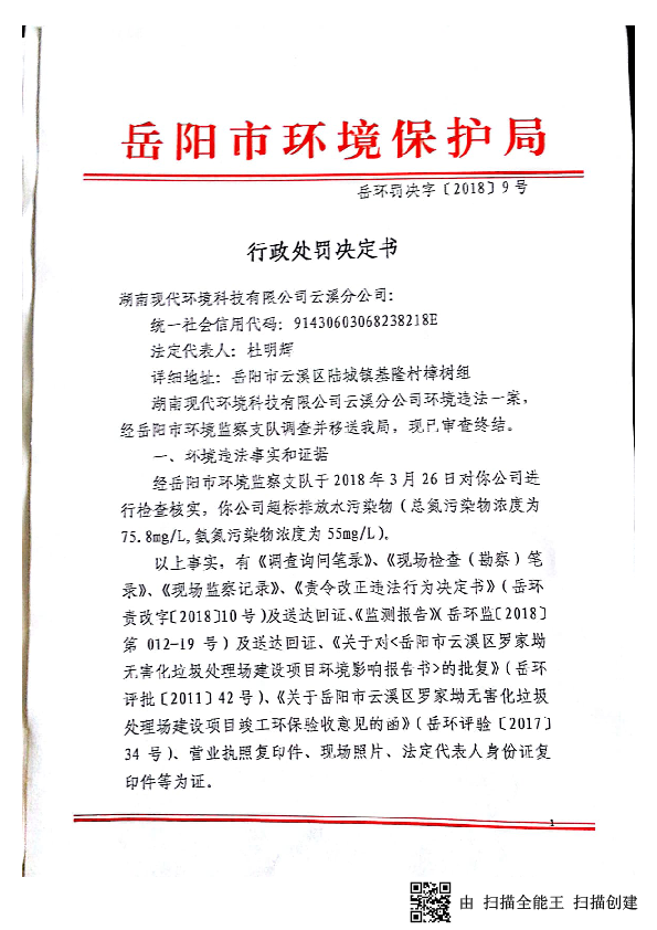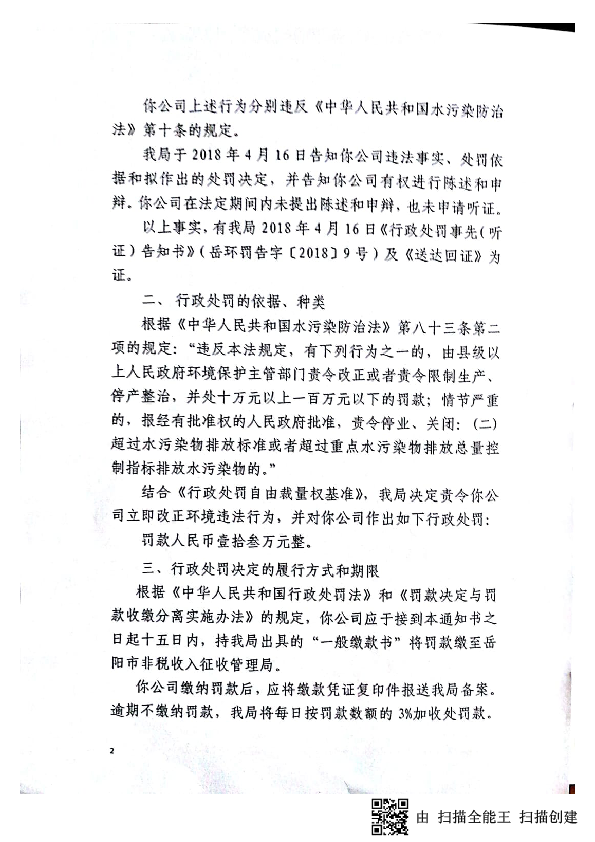 岳环罚决字[2018]9号