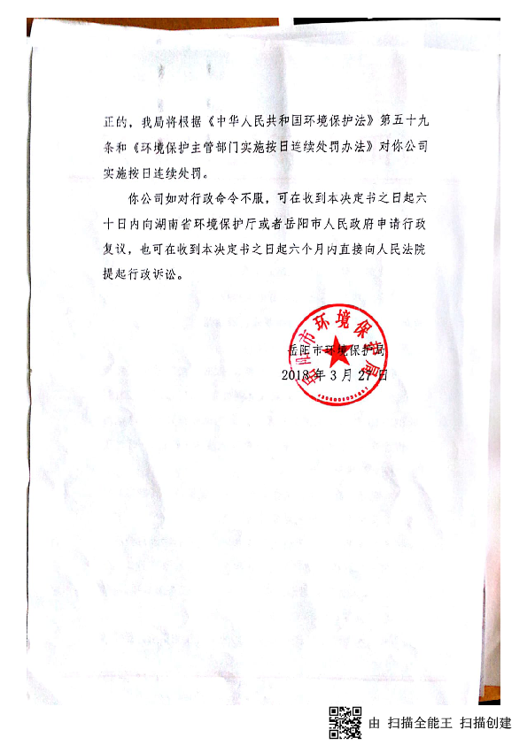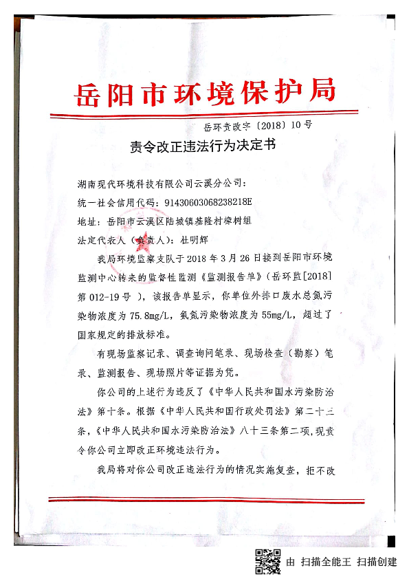 岳环责改字[2018]10号