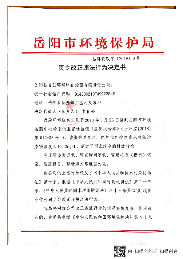 岳环责改字[2018]9号