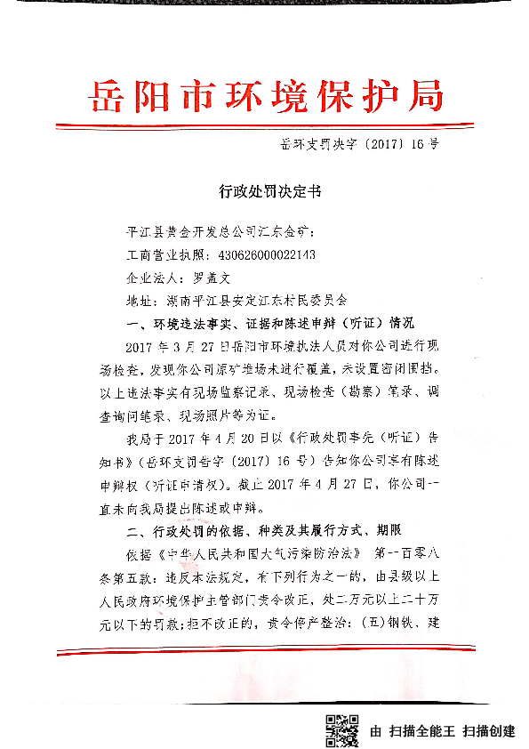 岳环支罚决字[2017]16号