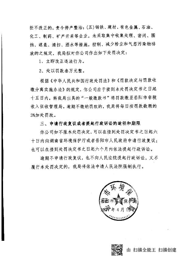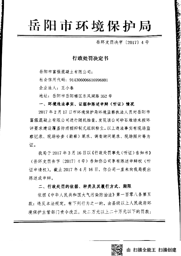 岳环支罚决字[2017]4号