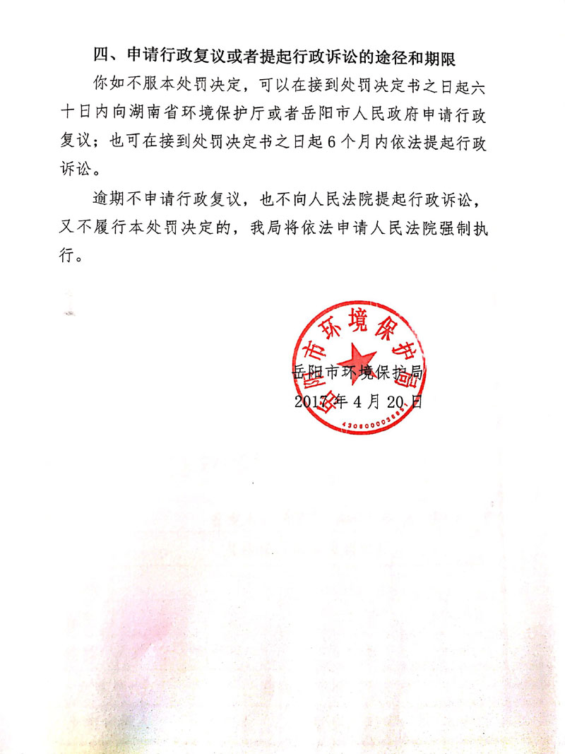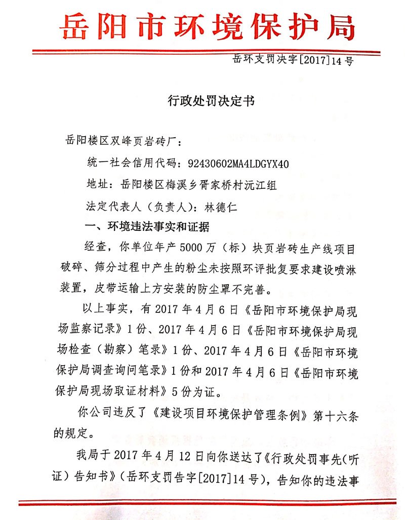 岳环支罚决字[2017]14号