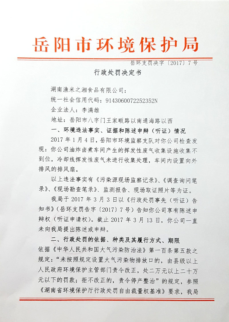 岳环支罚决字[2017]7号