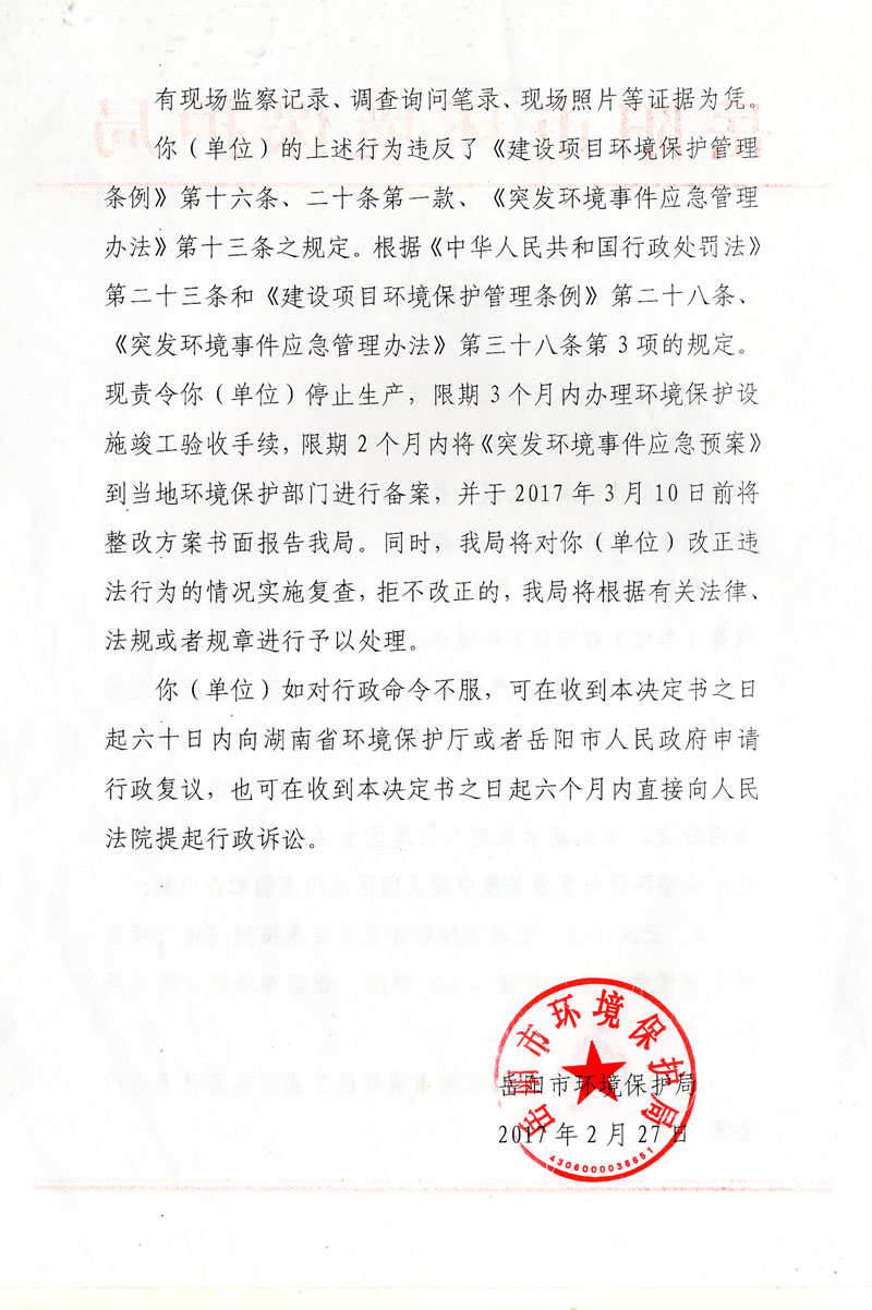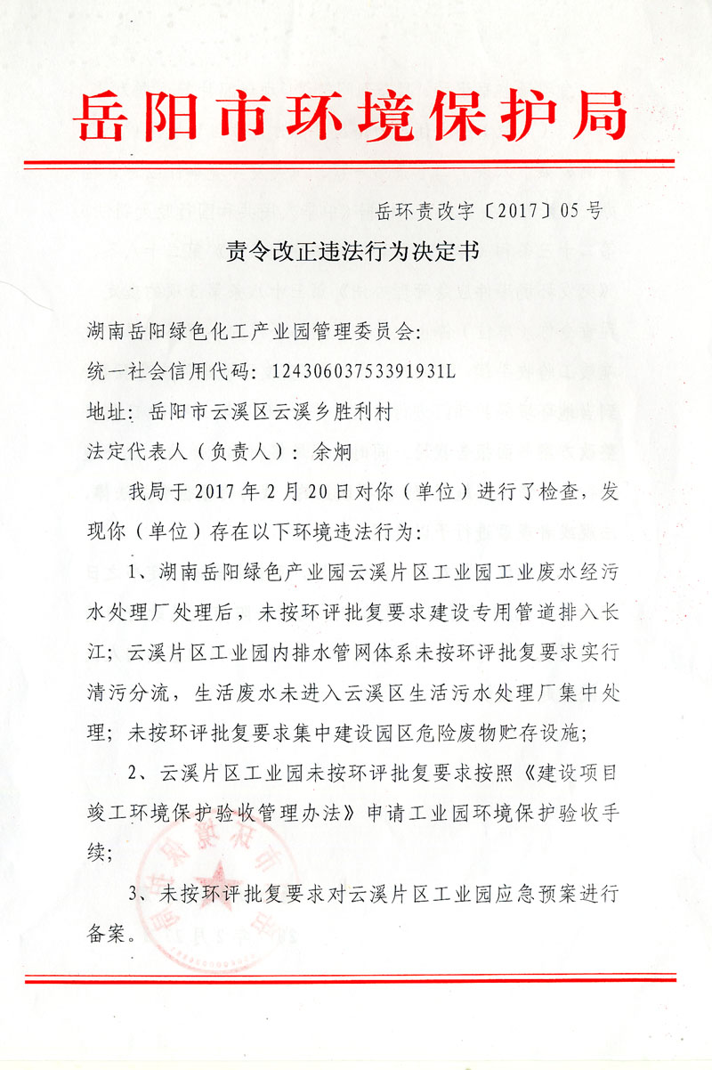 岳环责改字[2017]05号