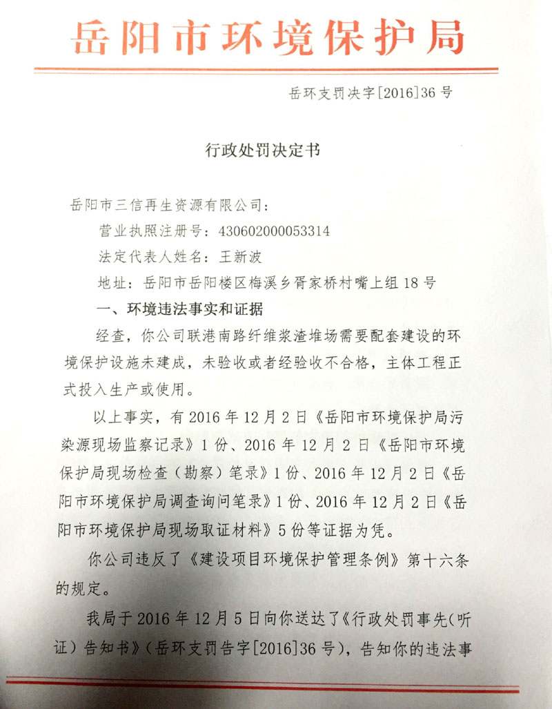 岳环支罚决字[2016]36号