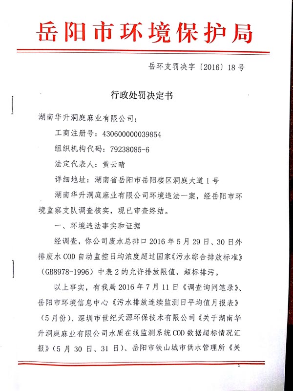 岳环支罚决字〔2016〕18号