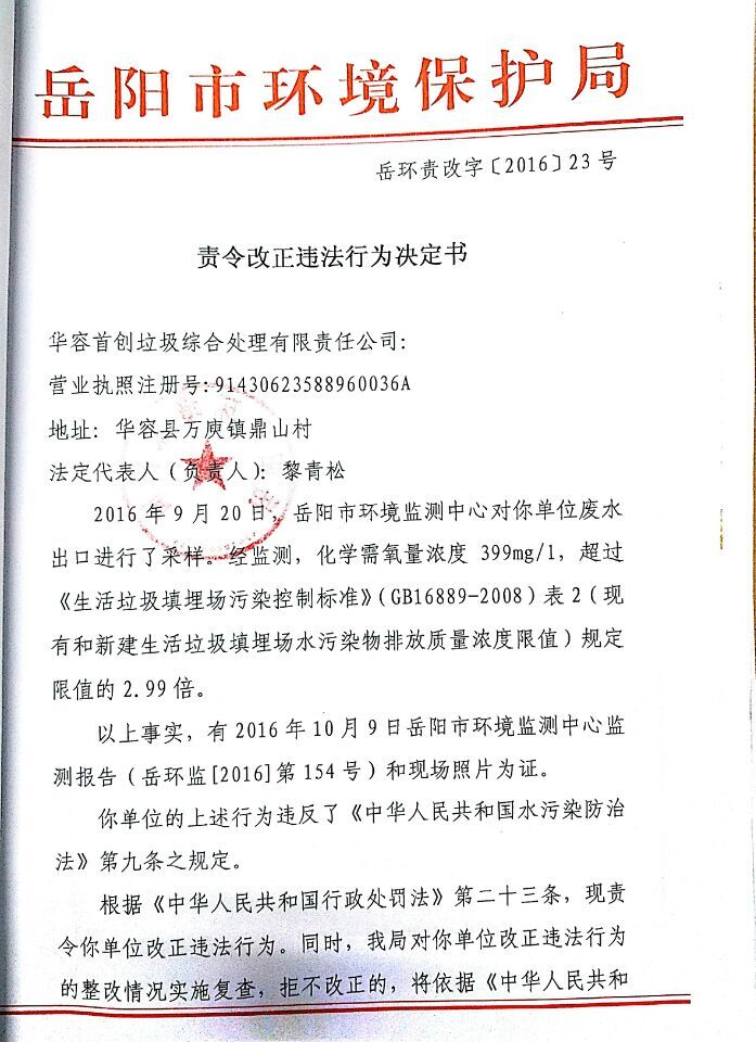 岳环责改字〔2016〕23号
