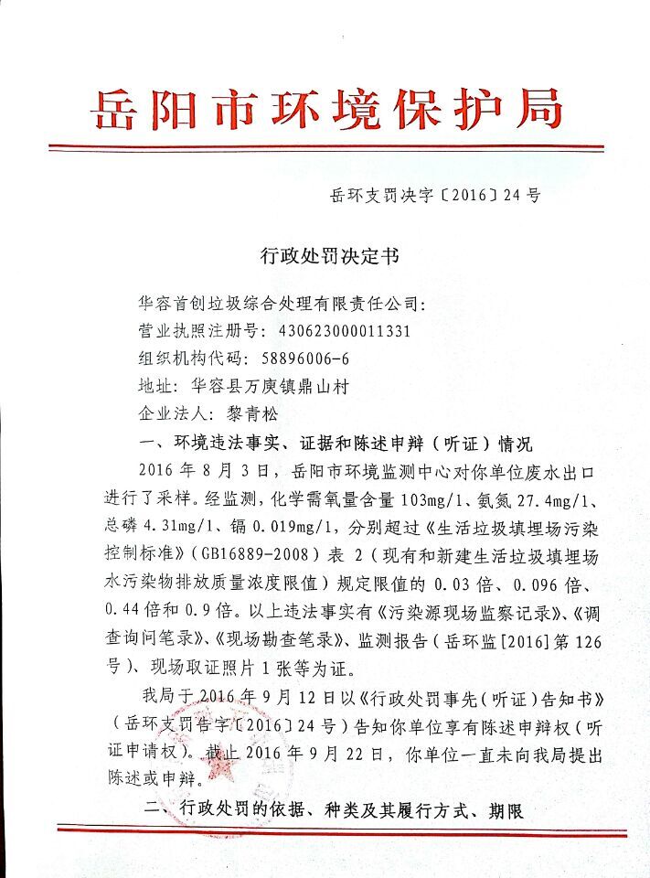 岳环支罚决字〔2016〕24号