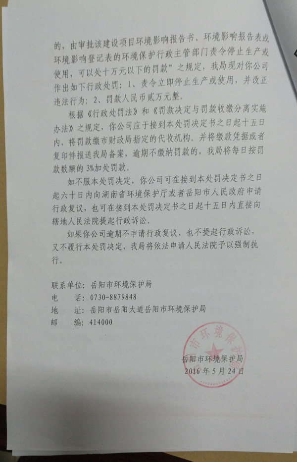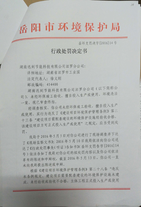 岳环支罚决字[2016]14号
