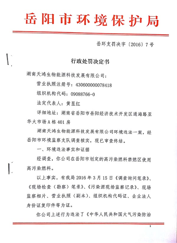 岳环支罚决字〔2016〕7号