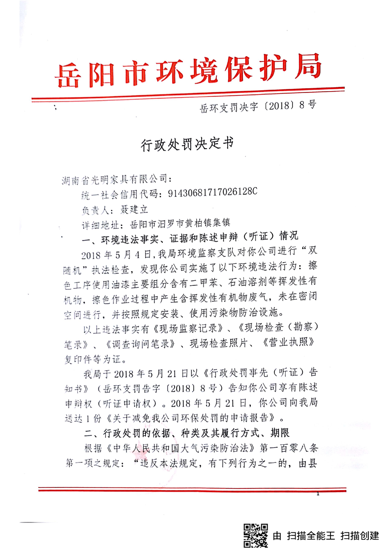 岳环支罚决字[2018]8号