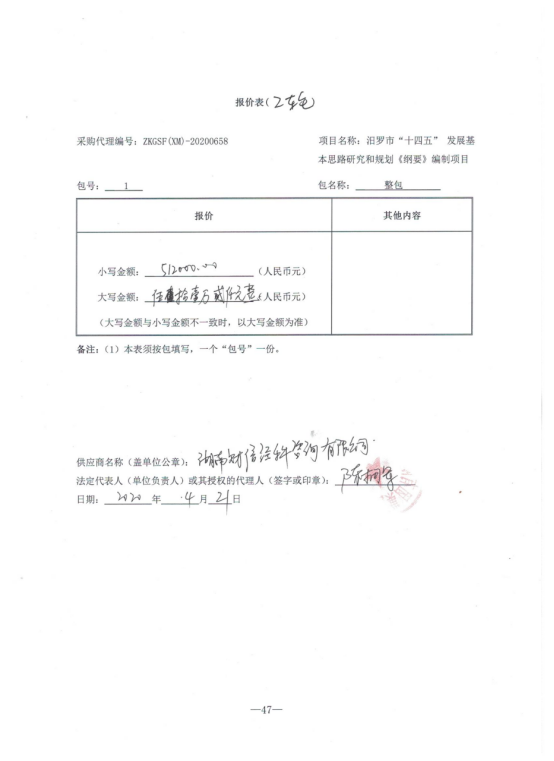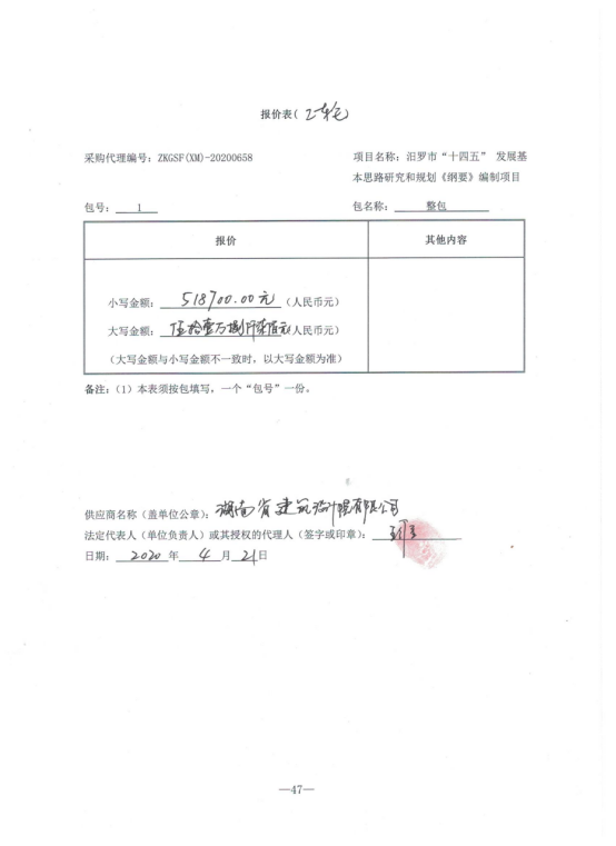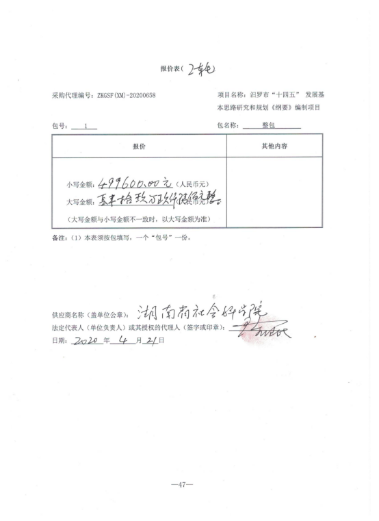 汨罗市发展和改革局的汨罗市“十四五”发展基本思路研究和规划《纲要》编制项目 竞争性谈判采购项目于2020年04月21日结束,现将成交结果公告如下: