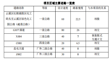 项目区主要公路:项目区域东西向无主要公路,南北向的主要公路有G107国道、X004.C080、岳化大道,本项目的建设将串联多个南北向的道路。