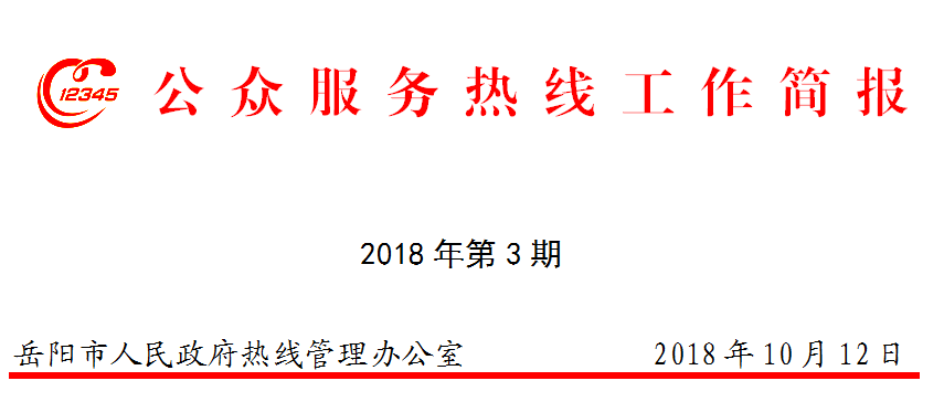 2018年三季度岳阳市12345公众服务热线综合评价表