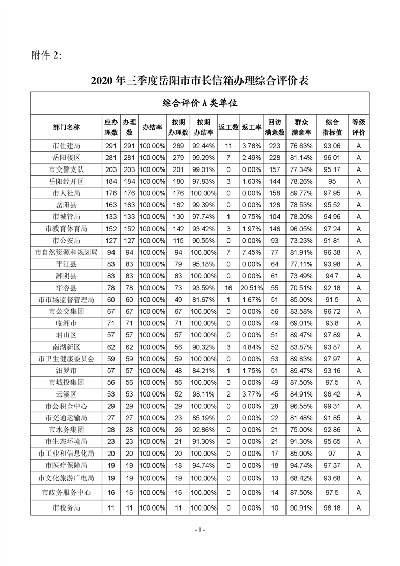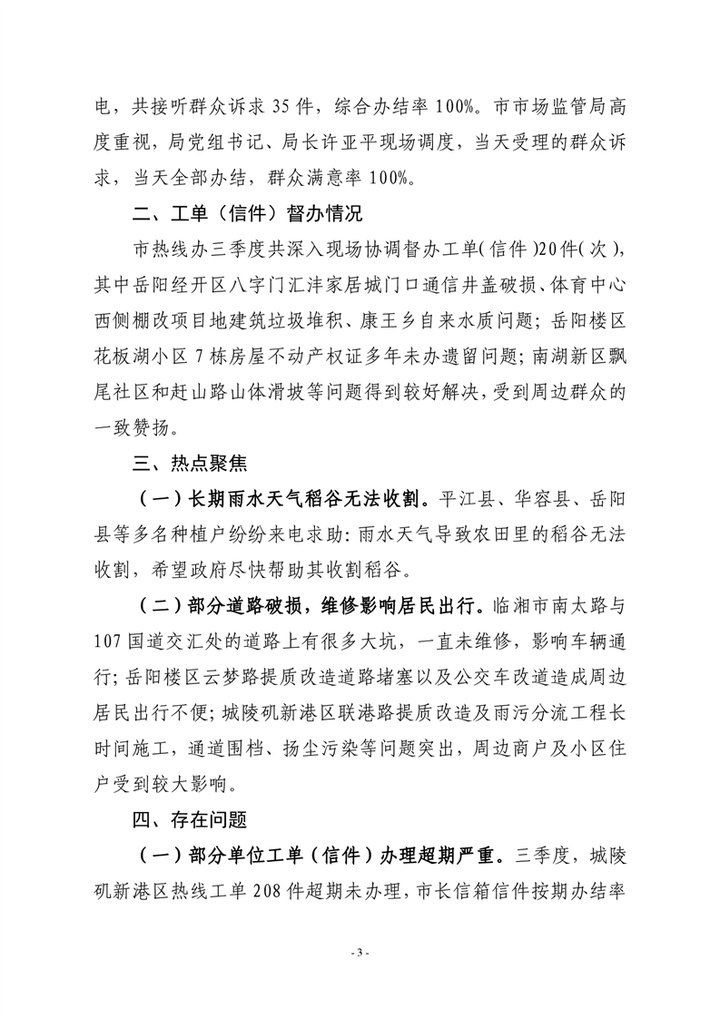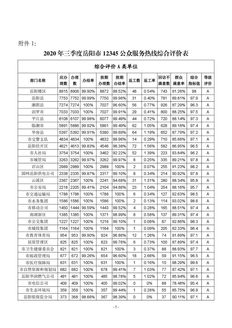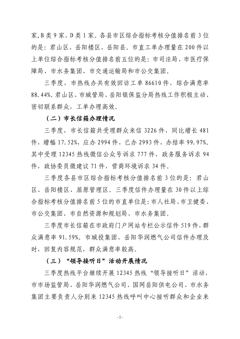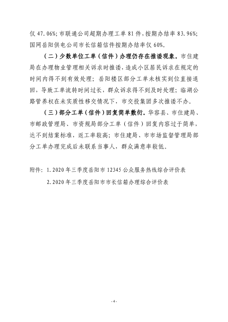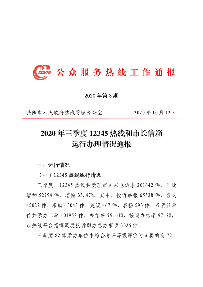 2020年三季度12345热线和市长信箱 运行办理情况通报
