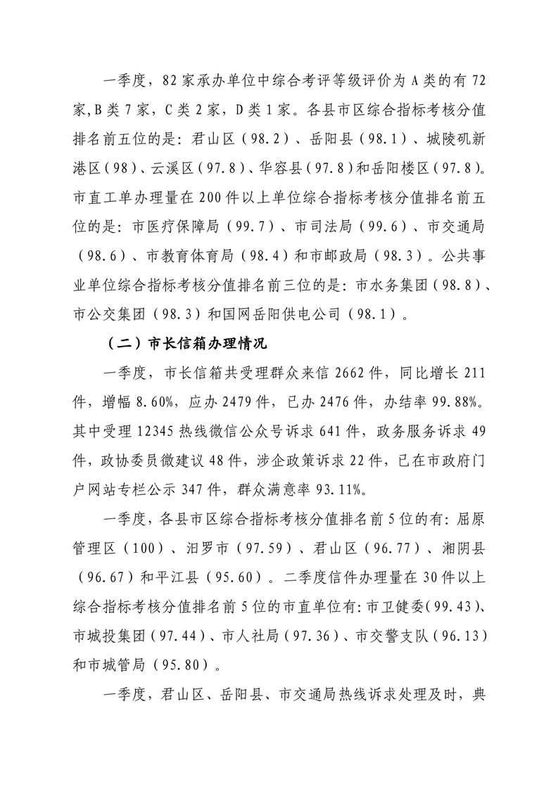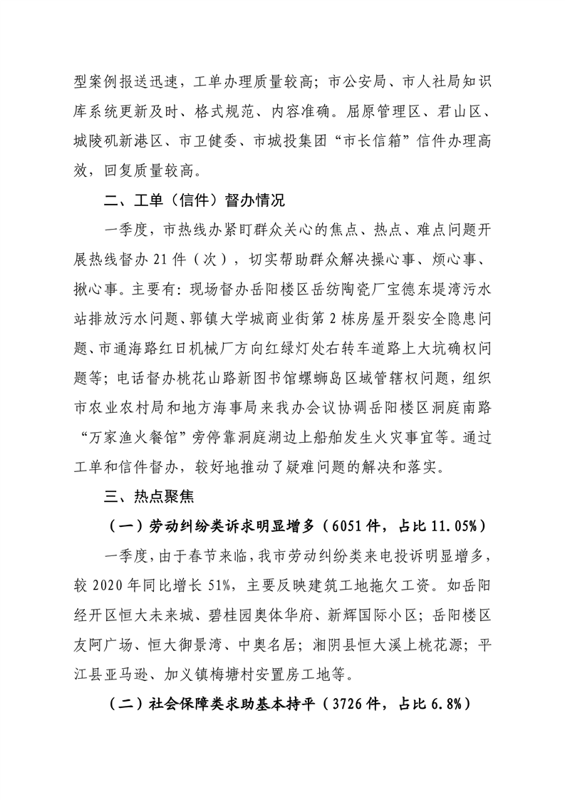 2021年一季度12345热线和市长信箱运行办理情况通报