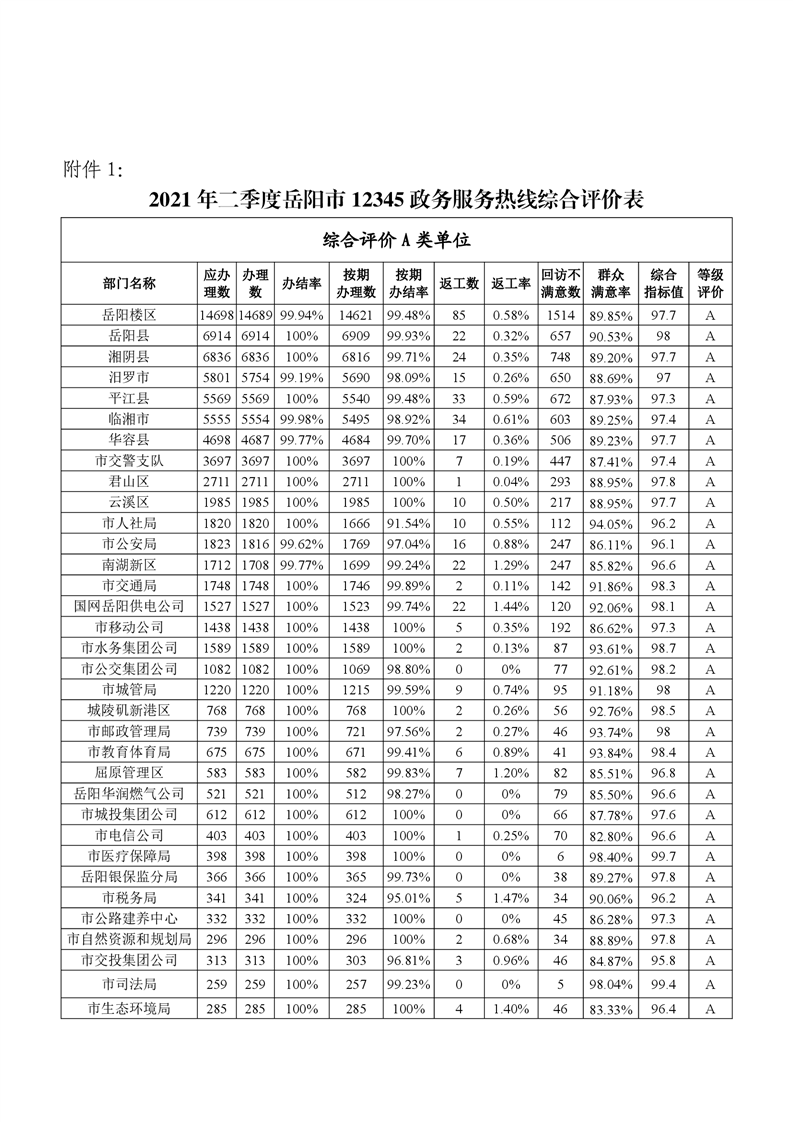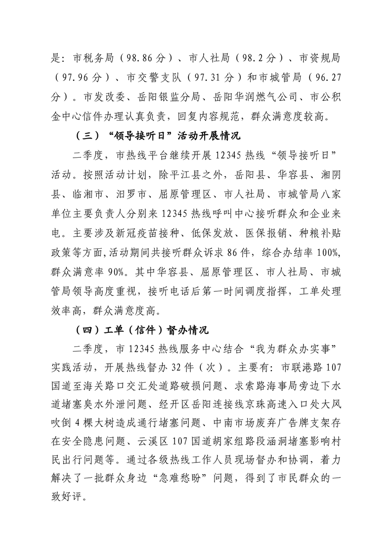 2021年二季度12345热线和市长信箱运行办理情况通报