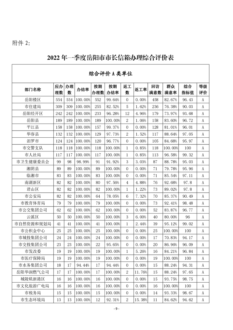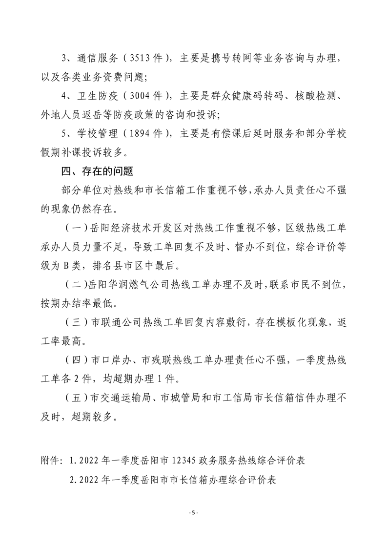 2022 年一季度 12345 热线和市长信箱 运行办理情况通报