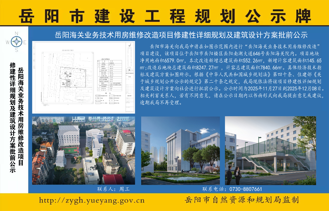 岳阳海关业务技术用房维修改造项目修建性详细规划及建筑设计方案批前公示