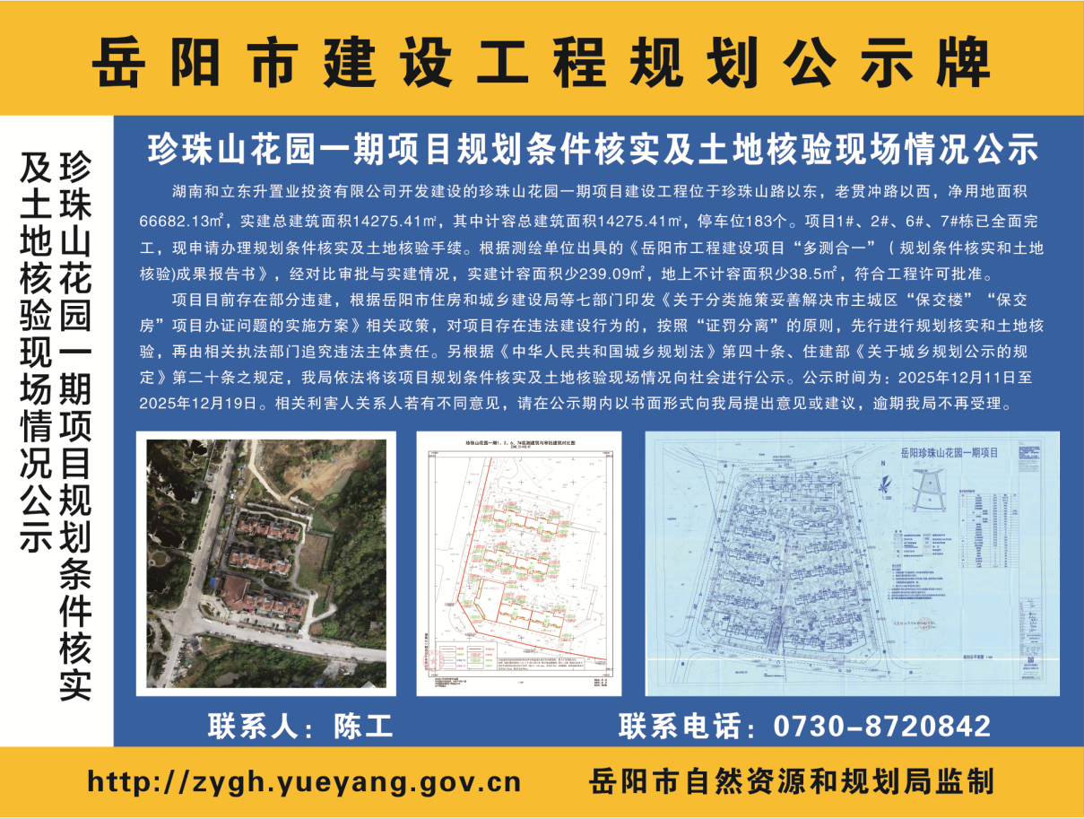 珍珠山花园一期项目规划条件核实及土地核验现场情况公示
