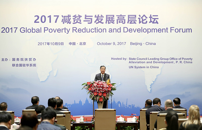 10月9日,2017减贫与发展高层论坛在北京召开,国务院副总理汪洋出席论坛并致辞。新华社记者 丁林 摄