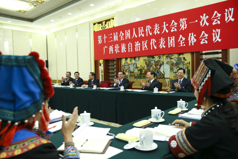 李克强3月6日上午来到十三届全国人大一次会议广西代表团参加审议。几位发言代表主要不是给本地“争项目”,而是围绕深化改革扩大开放“要政策”。总理说,过去5年,广西主要经济指标增速高于全国平均水平,靠的是改革开放,今后更大发展依然要靠改革开放。今年恰逢改革开放40周年,我们最好的纪念,就是改革更深化、开放更扩大。