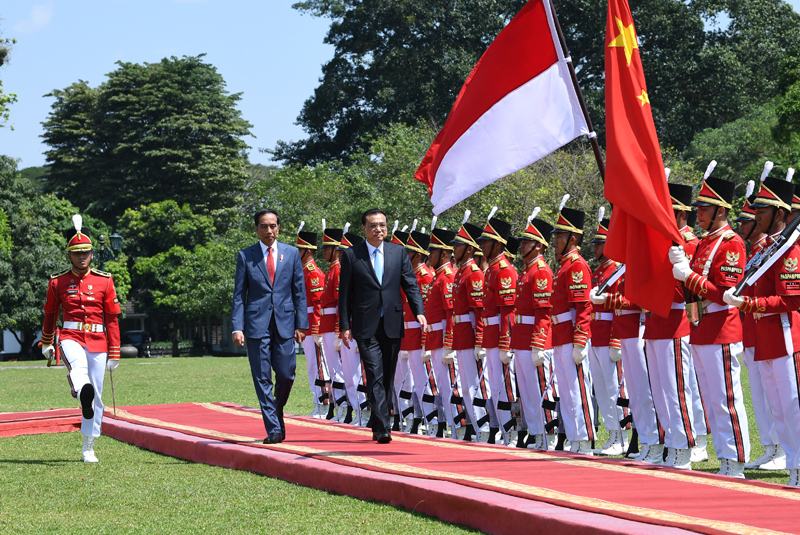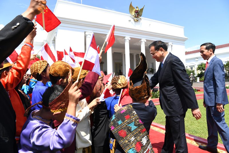 当地时间5月7日上午,印尼总统佐科在茂物总统府广场,为到访的中国总理李克强举行盛大的欢迎仪式。身着传统服饰的卫兵、演奏地方特色乐器的乐队、整齐列队的仪仗队,欢迎仪式融合了印尼的传统与现代元素。上百名身着民族服装的印尼小朋友挥舞着两国国旗,用中文向中国总理齐呼“欢迎您到印尼”!在通往总统府的道路两侧,当地民众和15000多名中小学生沿途夹道欢迎李克强一行。