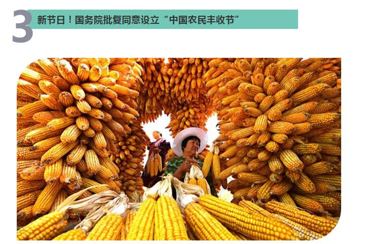 国务院批复同意自2018年起,将每年农历秋分设立为“中国农民丰收节”。农业农村部负责人表示,这是第一个在国家层面专门为农民设立的节日。